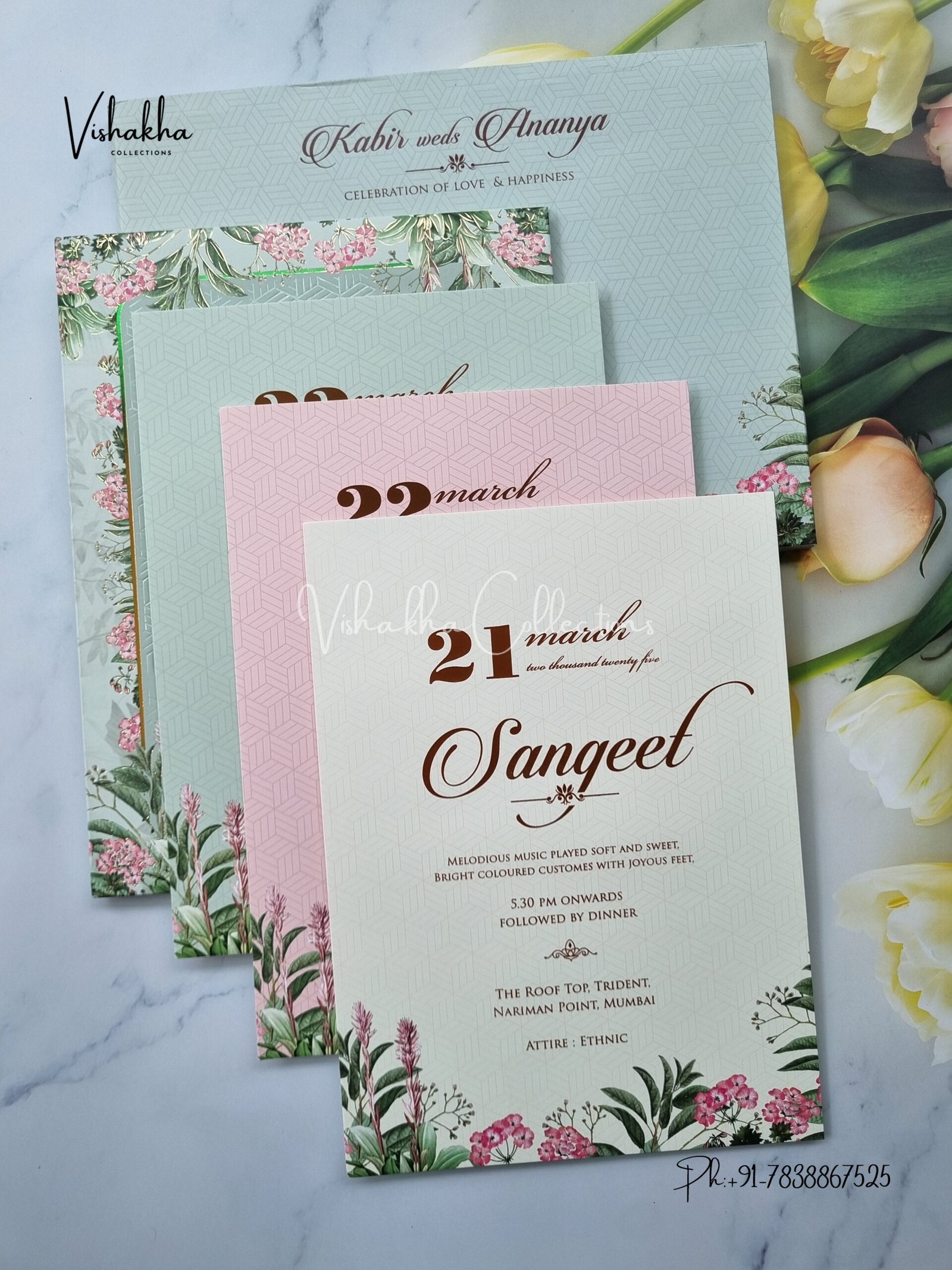 ₹135.00Light Blue Floral padded with name plate Wedding Invitation Card SK-3389