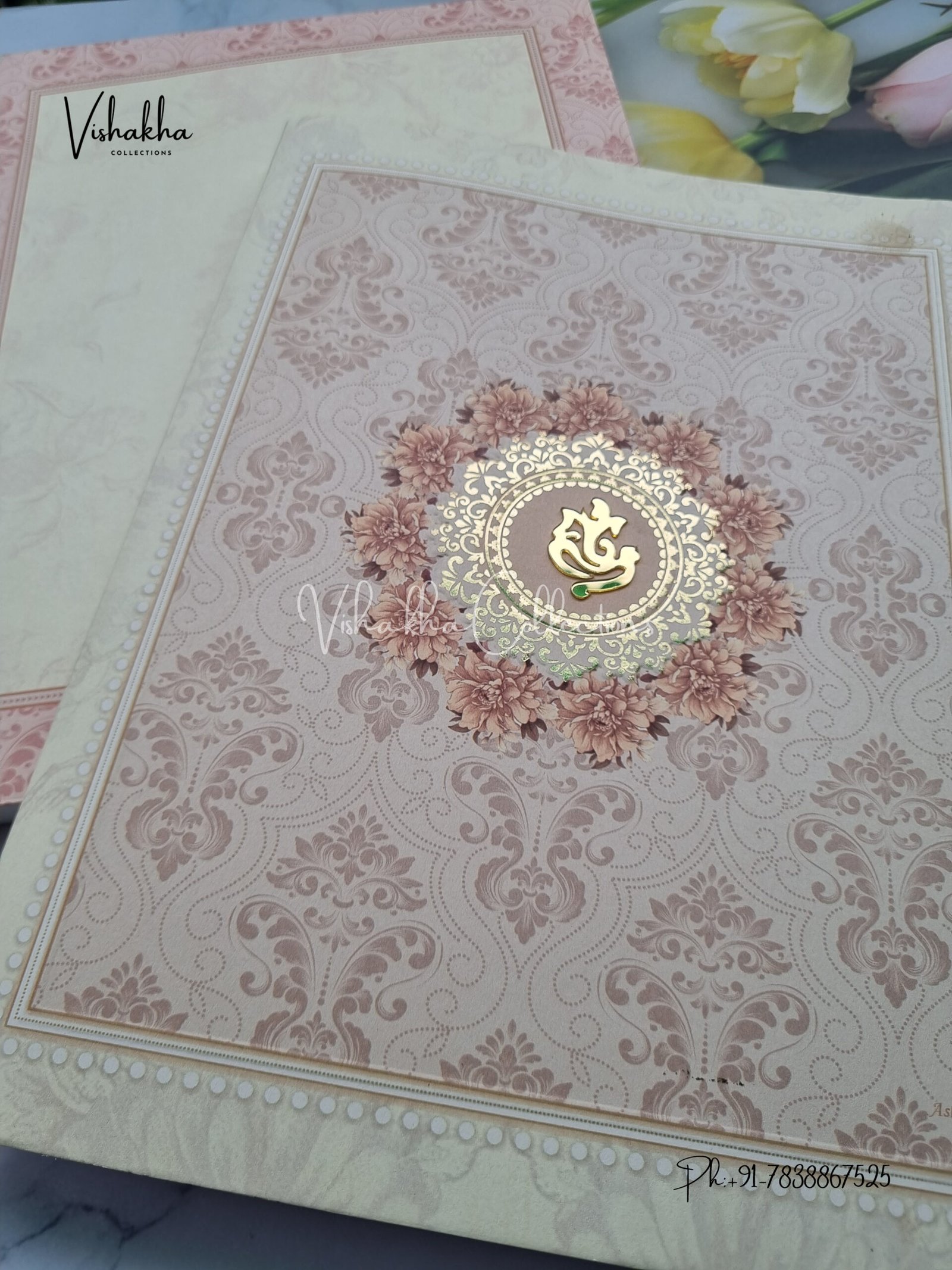 Vishakha Collections presents you beautiful luxury wedding invitation cards with all latest designs and the latest variety. Its just not a wedding invitation card but a beautiful feeling of love and relationship it carries for you. Beautifully printed and packed with a bundle of love. if you like it, dont think again, just go for it.If you are worrying about the quality of the product, send your doubts to us. We are here to help you. If you want in wholesale or bulk, dont forget to contact us.
