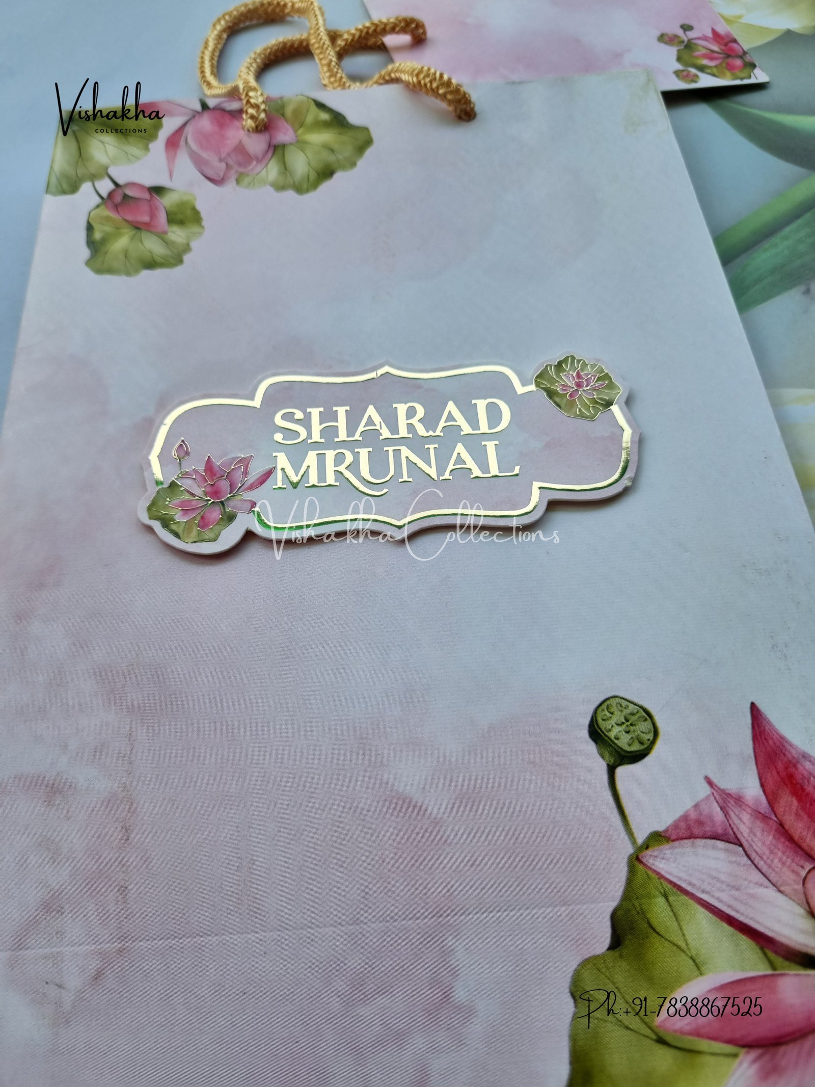 Vishakha Collections presents you beautiful luxury wedding invitation cards with all latest designs and the latest variety. Its just not a wedding invitation card but a beautiful feeling of love and relationship it carries for you. Beautifully printed and packed with a bundle of love. if you like it, dont think again, just go for it.If you are worrying about the quality of the product, send your doubts to us. We are here to help you. If you want in wholesale or bulk, dont forget to contact us.