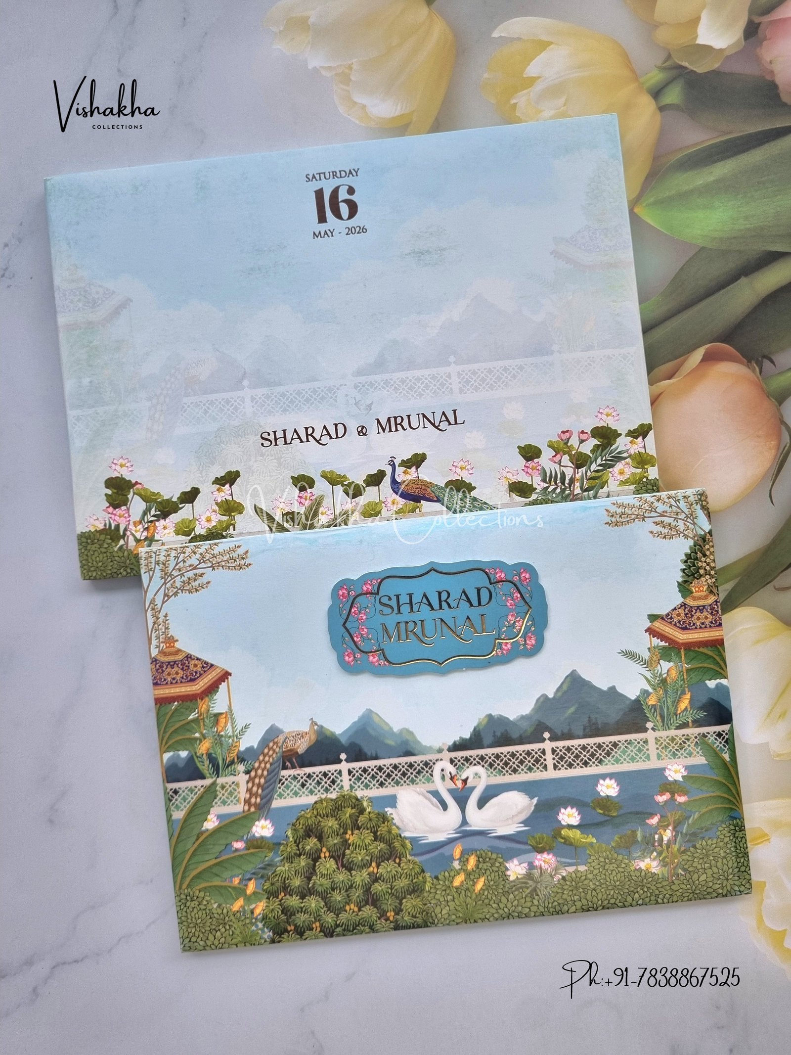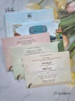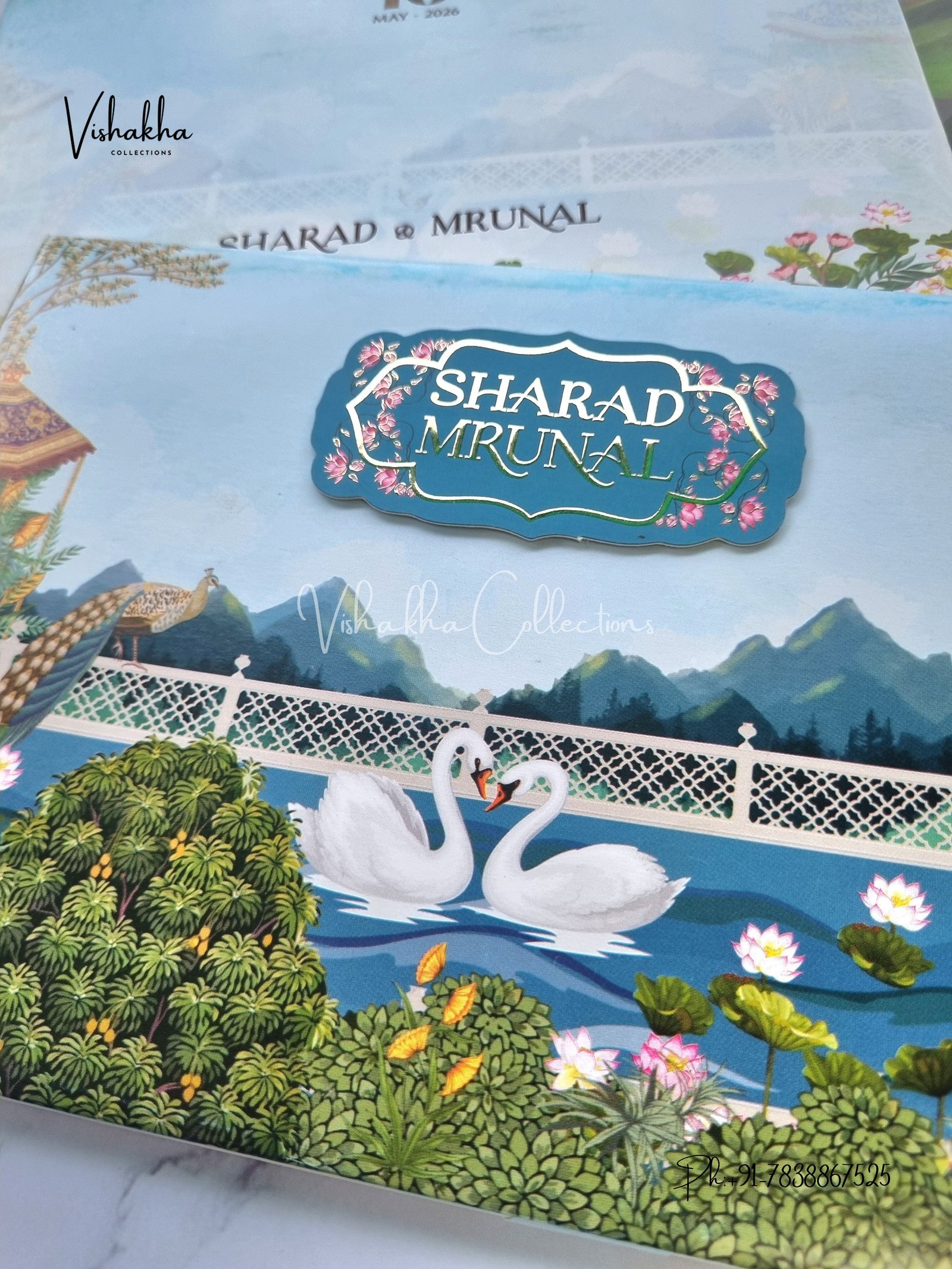 Vishakha Collections presents you beautiful luxury wedding invitation cards with all latest designs and the latest variety. Its just not a wedding invitation card but a beautiful feeling of love and relationship it carries for you. Beautifully printed and packed with a bundle of love. if you like it, dont think again, just go for it.If you are worrying about the quality of the product, send your doubts to us. We are here to help you. If you want in wholesale or bulk, dont forget to contact us.