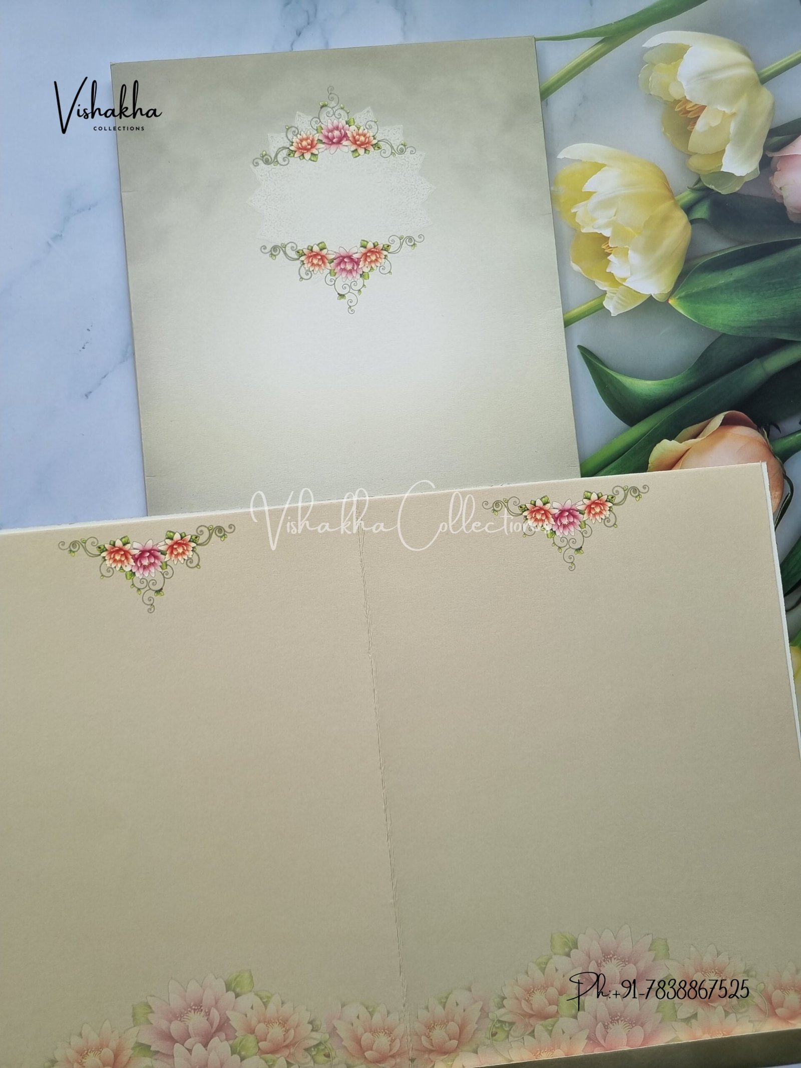Vishakha Collections presents you beautiful luxury wedding invitation cards with all latest designs and the latest variety. Its just not a wedding invitation card but a beautiful feeling of love and relationship it carries for you. Beautifully printed and packed with a bundle of love. if you like it, dont think again, just go for it.If you are worrying about the quality of the product, send your doubts to us. We are here to help you. If you want in wholesale or bulk, dont forget to contact us.