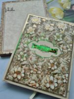 ₹92.00Olive green and white floral with colorful stones and acrylic name plate box style hardboard invitation card
