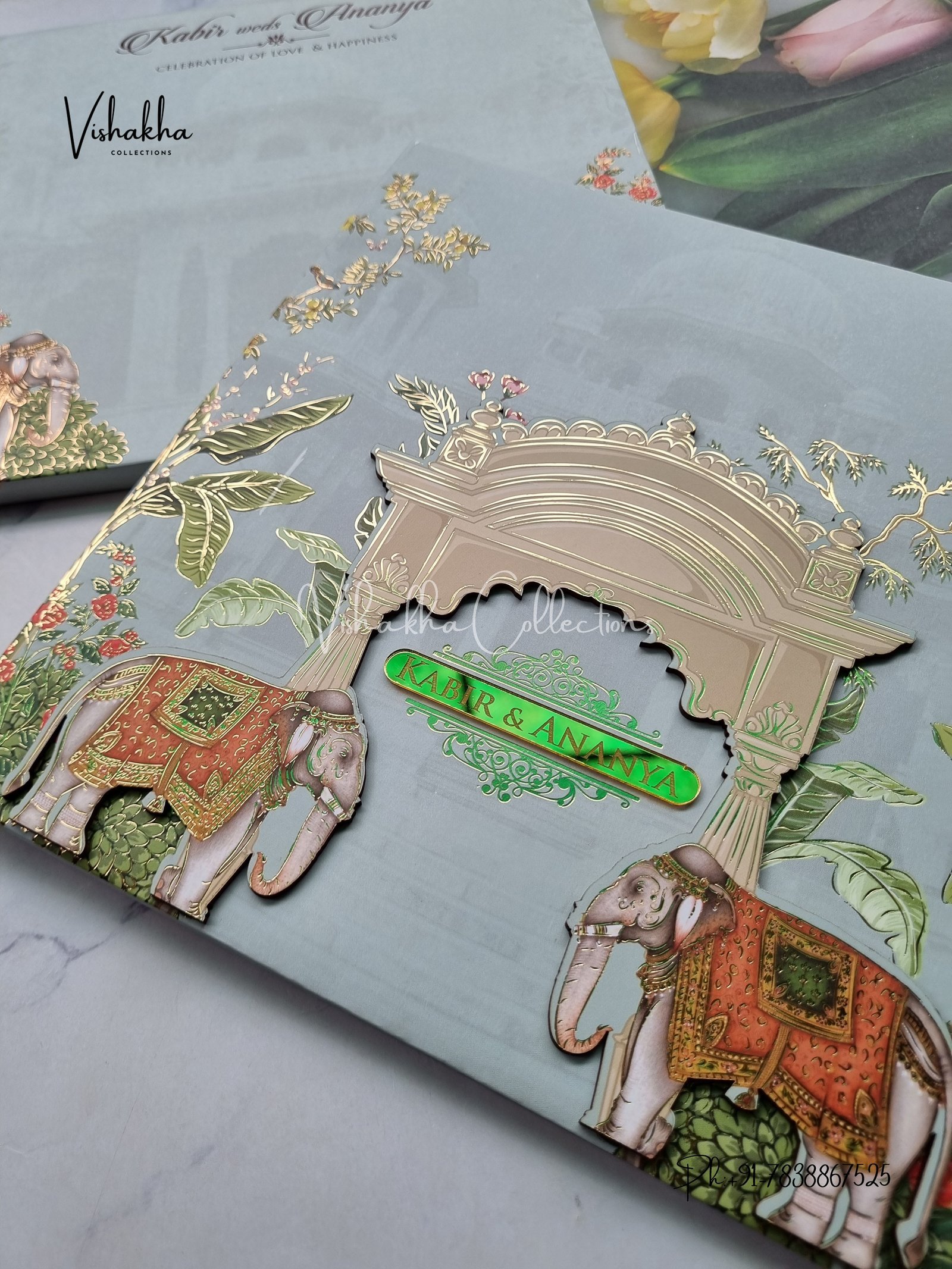 Vishakha Collections presents you beautiful luxury wedding invitation cards with all latest designs and the latest variety. Its just not a wedding invitation card but a beautiful feeling of love and relationship it carries for you. Beautifully printed and packed with a bundle of love. if you like it, dont think again, just go for it.If you are worrying about the quality of the product, send your doubts to us. We are here to help you. If you want in wholesale or bulk, dont forget to contact us.