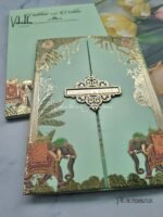 Be the first to review “Semi Box Hathi Double Door Hindu Muslim Christian Sikh pista green Colored invitation Cards SK-3299”