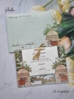 Olive green with White flowers MDF with laser cut names Wedding Invitation Card SK-3281
