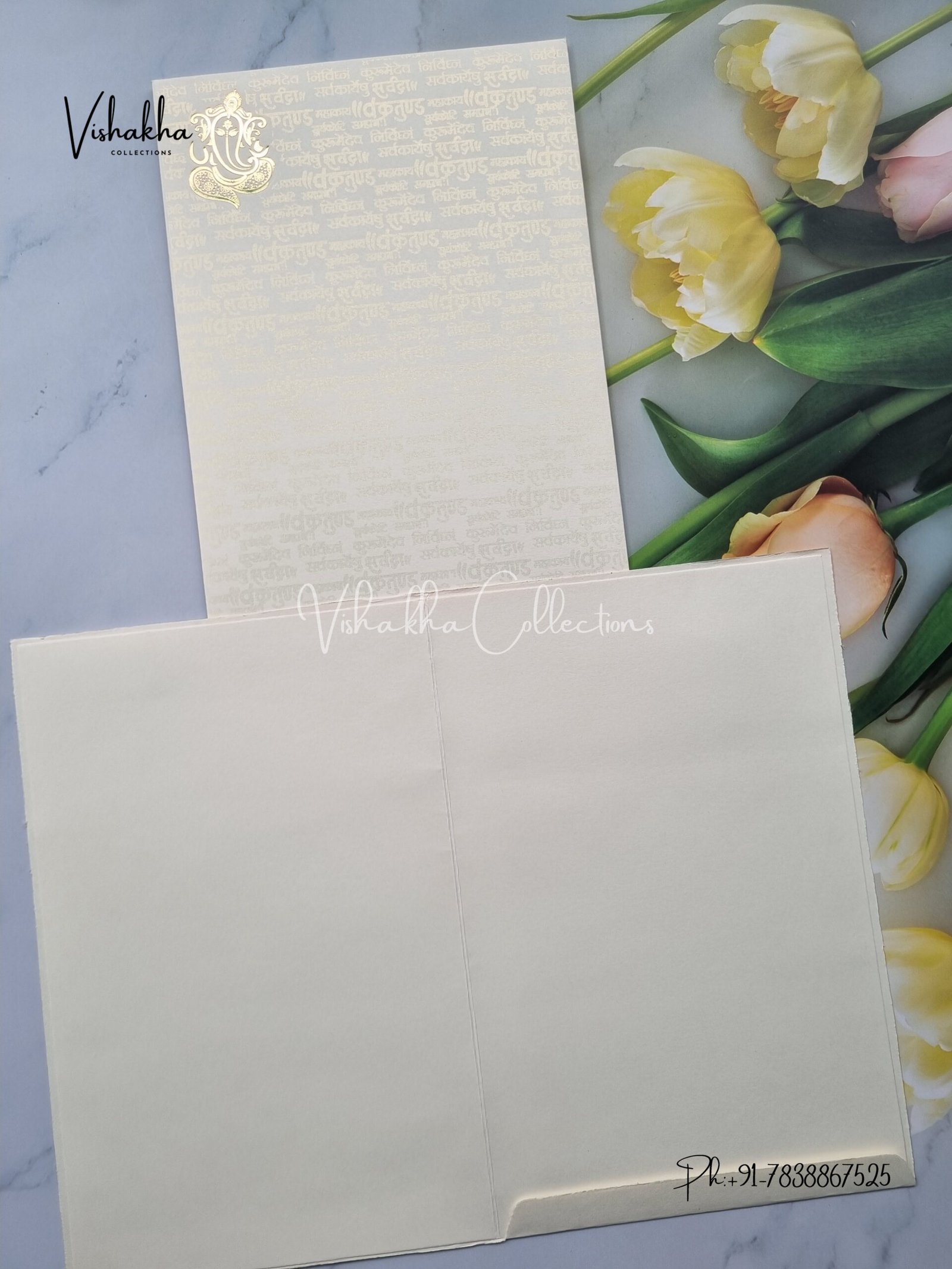 Vishakha Collections presents you beautiful luxury wedding invitation cards with all latest designs and the latest variety. Its just not a wedding invitation card but a beautiful feeling of love and relationship it carries for you. Beautifully printed and packed with a bundle of love. if you like it, dont think again, just go for it.If you are worrying about the quality of the product, send your doubts to us. We are here to help you. If you want in wholesale or bulk, dont forget to contact us.
