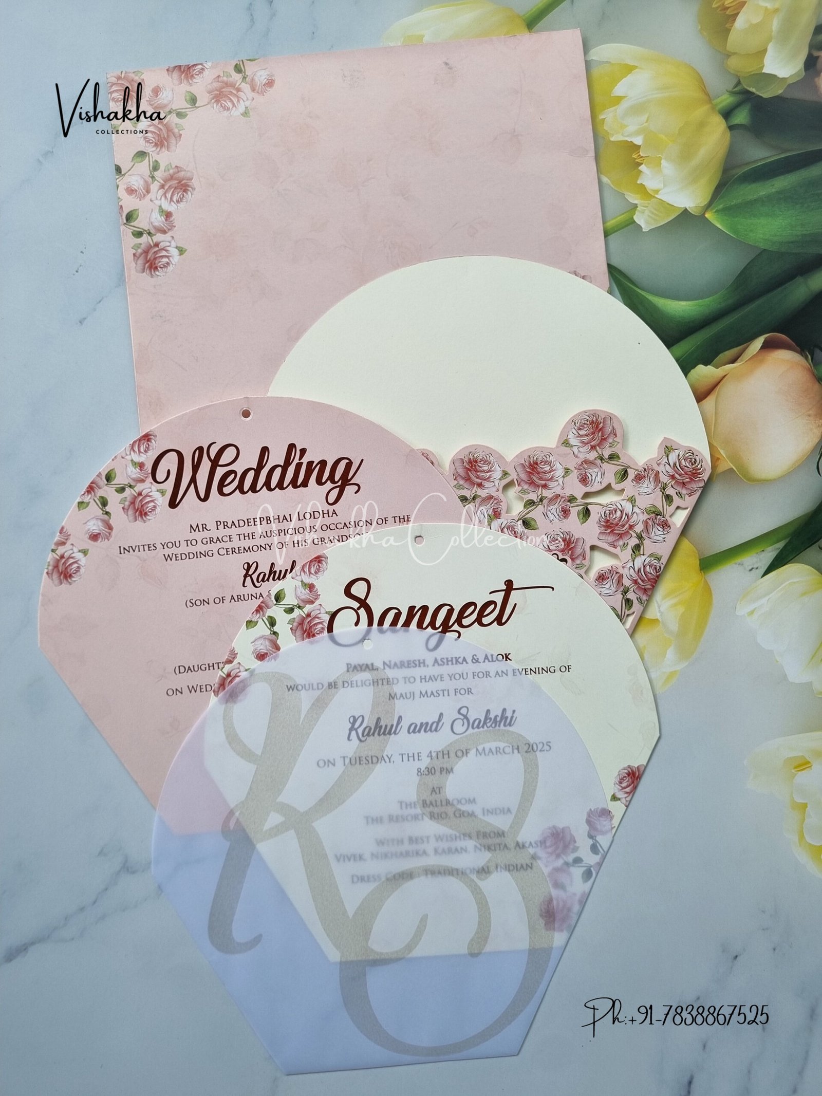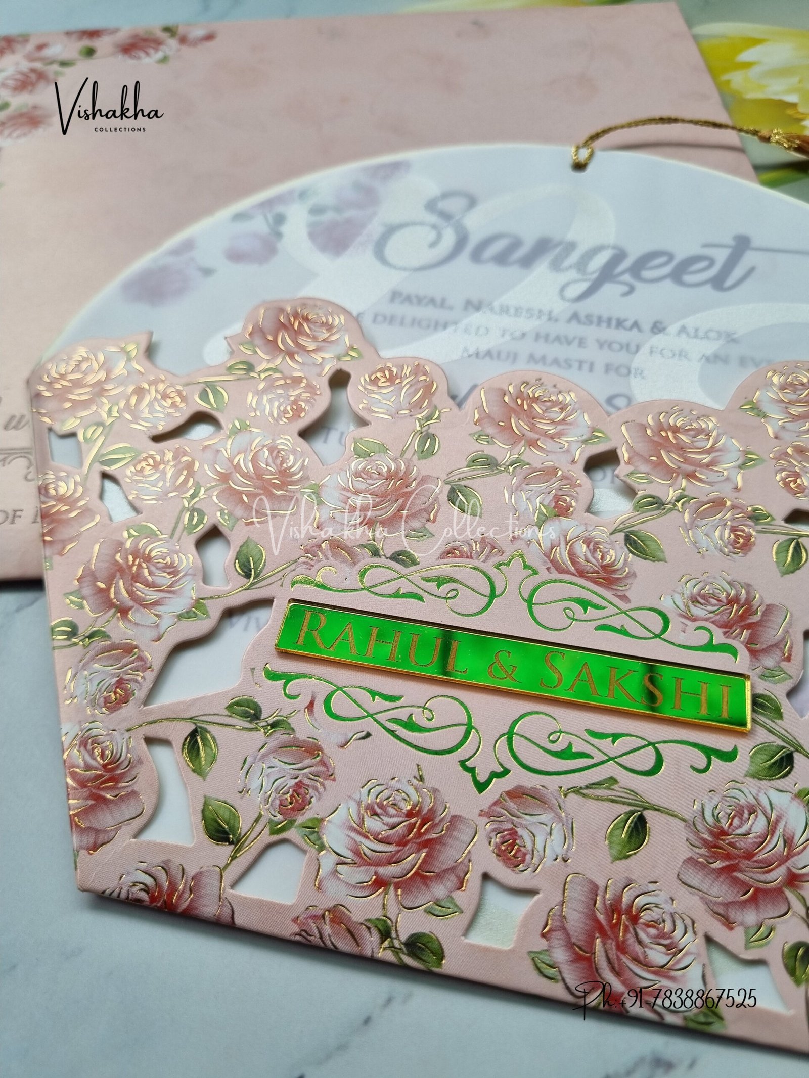 Vishakha Collections presents you beautiful luxury wedding invitation cards with all latest designs and the latest variety. Its just not a wedding invitation card but a beautiful feeling of love and relationship it carries for you. Beautifully printed and packed with a bundle of love. if you like it, dont think again, just go for it.If you are worrying about the quality of the product, send your doubts to us. We are here to help you. If you want in wholesale or bulk, dont forget to contact us.