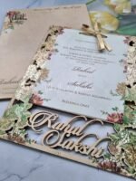 ₹80.00Semi Box Flower Hindu Muslim Christian Sikh Named MDF Laser Cut muddy brown Colored invitation Cards SK-3288