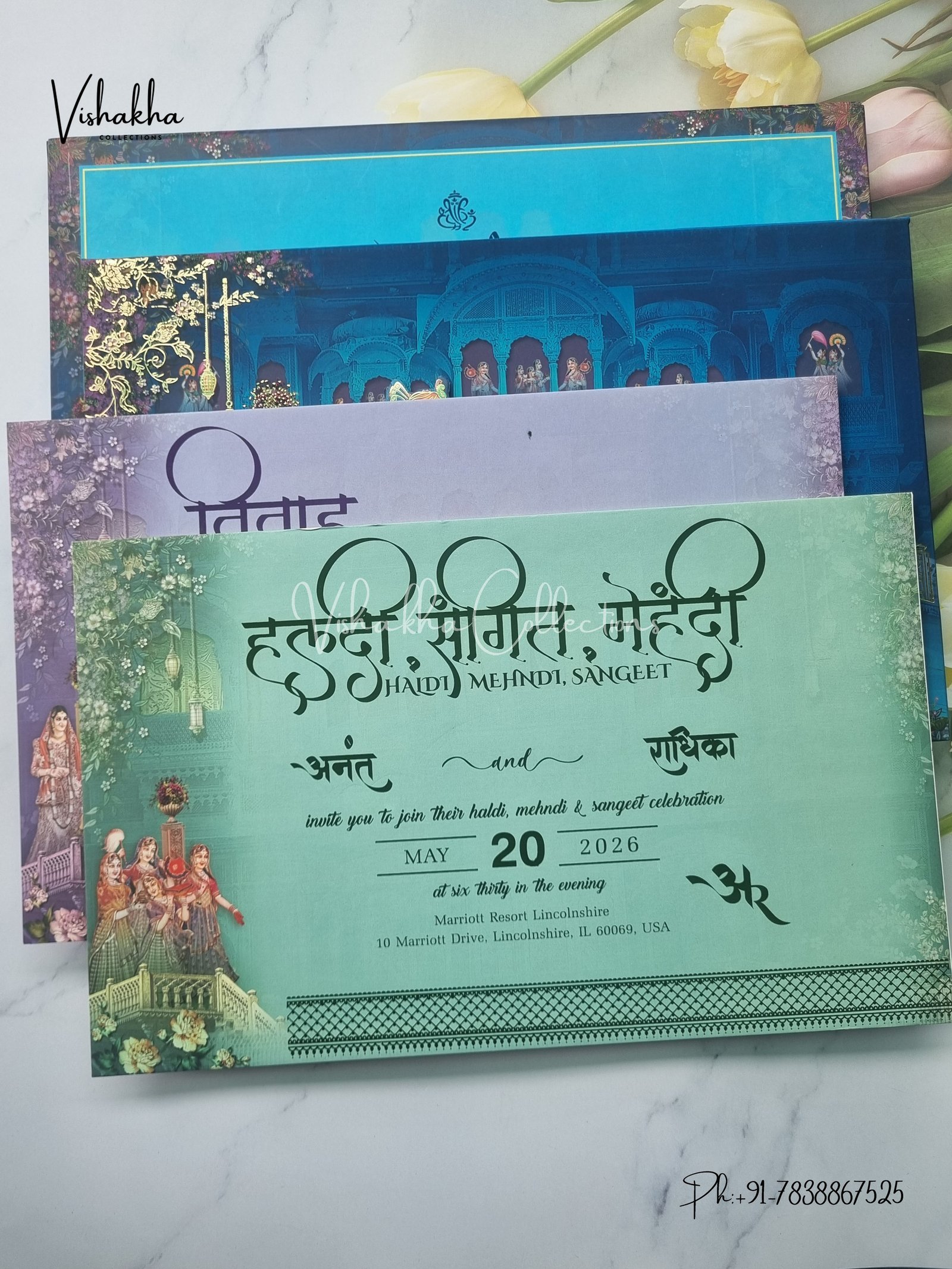 Vishakha Collections presents you beautiful luxury wedding invitation cards with all latest designs and the latest variety. Its just not a wedding invitation card but a beautiful feeling of love and relationship it carries for you. Beautifully printed and packed with a bundle of love. if you like it, dont think again, just go for it.If you are worrying about the quality of the product, send your doubts to us. We are here to help you. If you want in wholesale or bulk, dont forget to contact us.