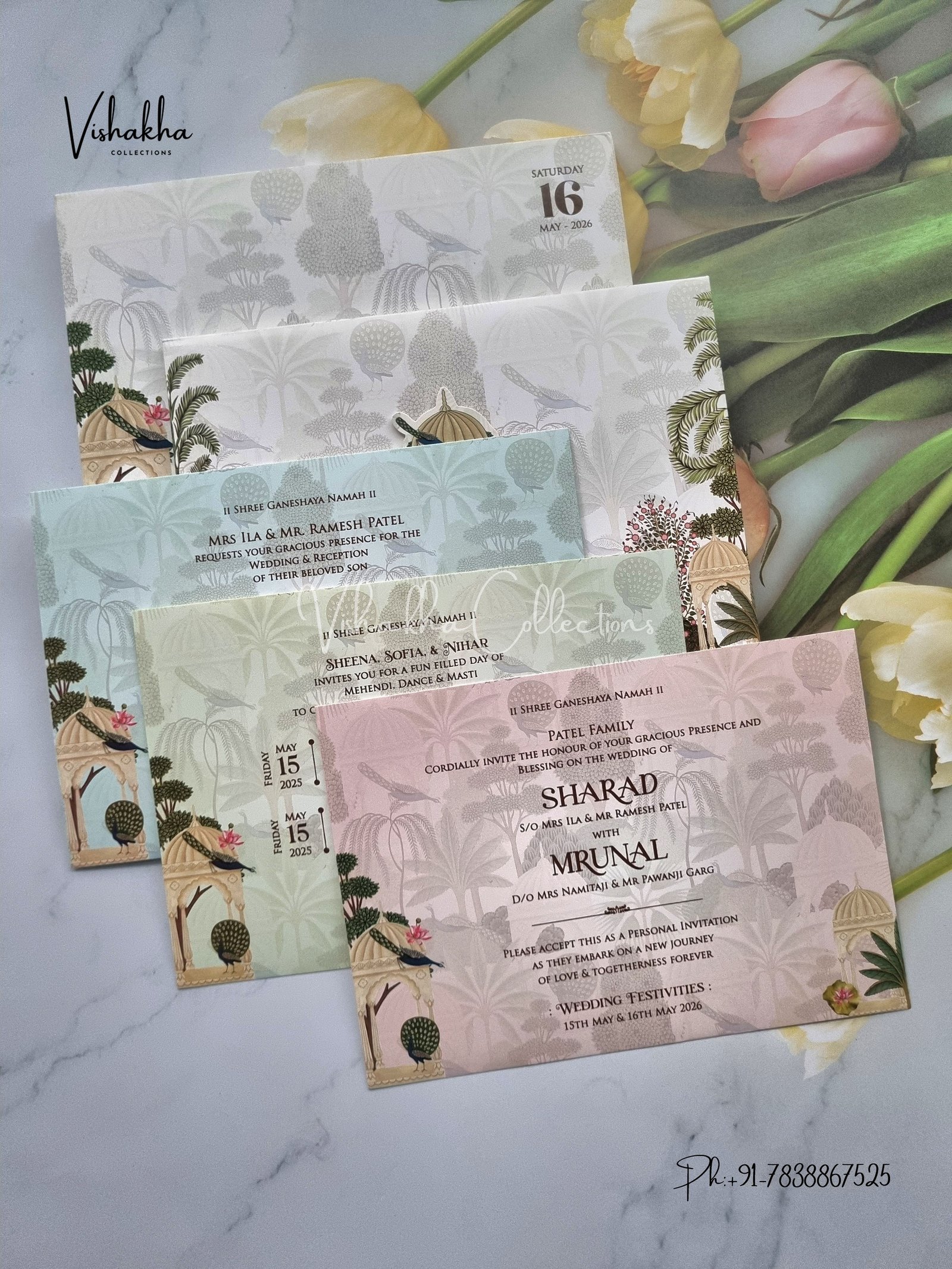 Vishakha Collections presents you beautiful luxury wedding invitation cards with all latest designs and the latest variety. Its just not a wedding invitation card but a beautiful feeling of love and relationship it carries for you. Beautifully printed and packed with a bundle of love. if you like it, dont think again, just go for it.If you are worrying about the quality of the product, send your doubts to us. We are here to help you. If you want in wholesale or bulk, dont forget to contact us.