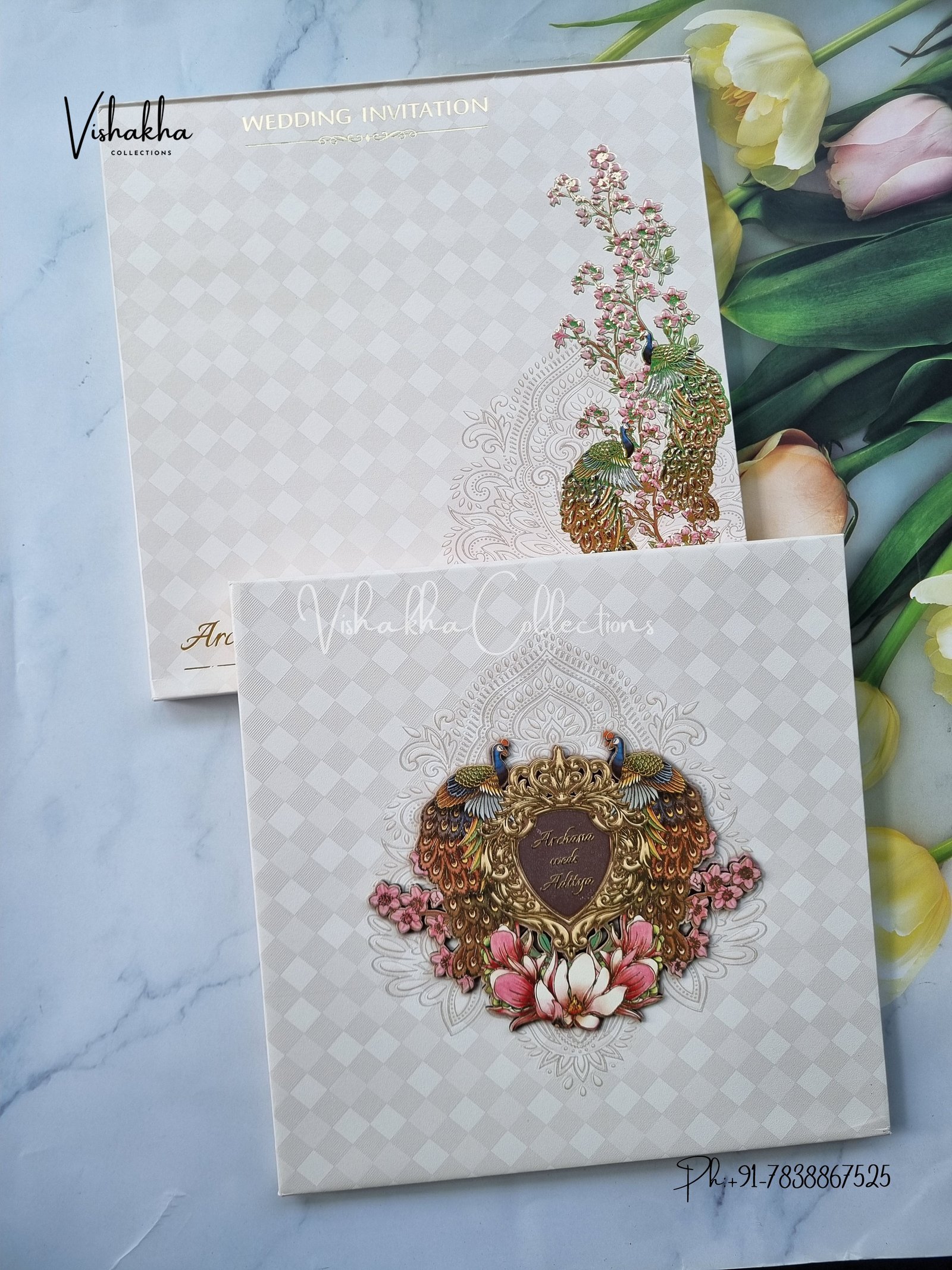 ₹372.00Peacock Flower Hindu Sikh Padded MDF Board Laser Cut invitation Cards EX-715
