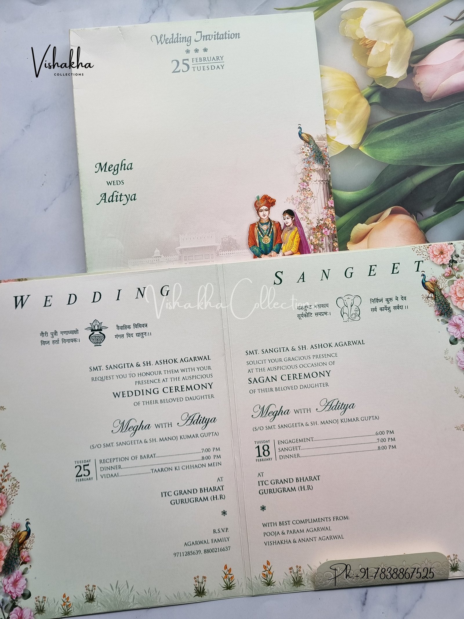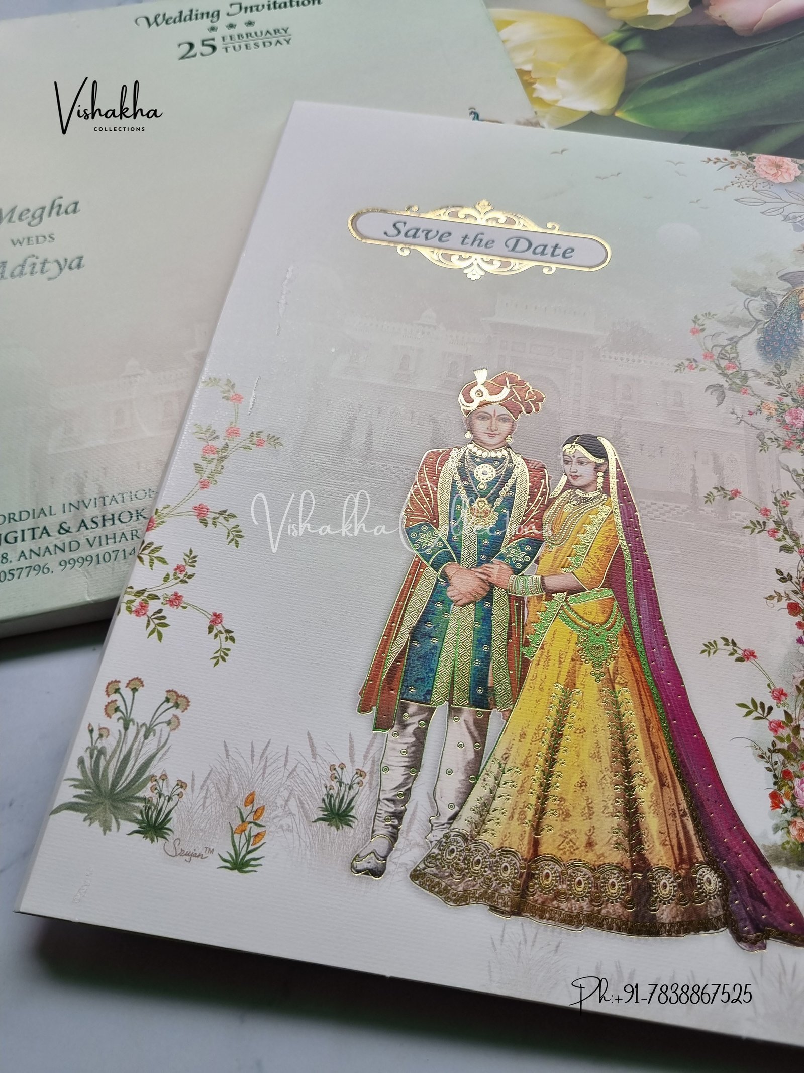 Vishakha Collections presents you beautiful luxury wedding invitation cards with all latest designs and the latest variety. Its just not a wedding invitation card but a beautiful feeling of love and relationship it carries for you. Beautifully printed and packed with a bundle of love. if you like it, dont think again, just go for it.If you are worrying about the quality of the product, send your doubts to us. We are here to help you. If you want in wholesale or bulk, dont forget to contact us.