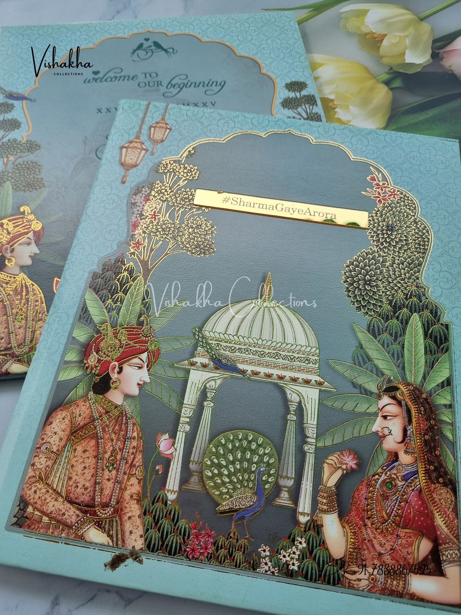 ₹25.00Peacock Semi Box Dulah Dulhan Hindu Padded invitation Cards ATS-P133