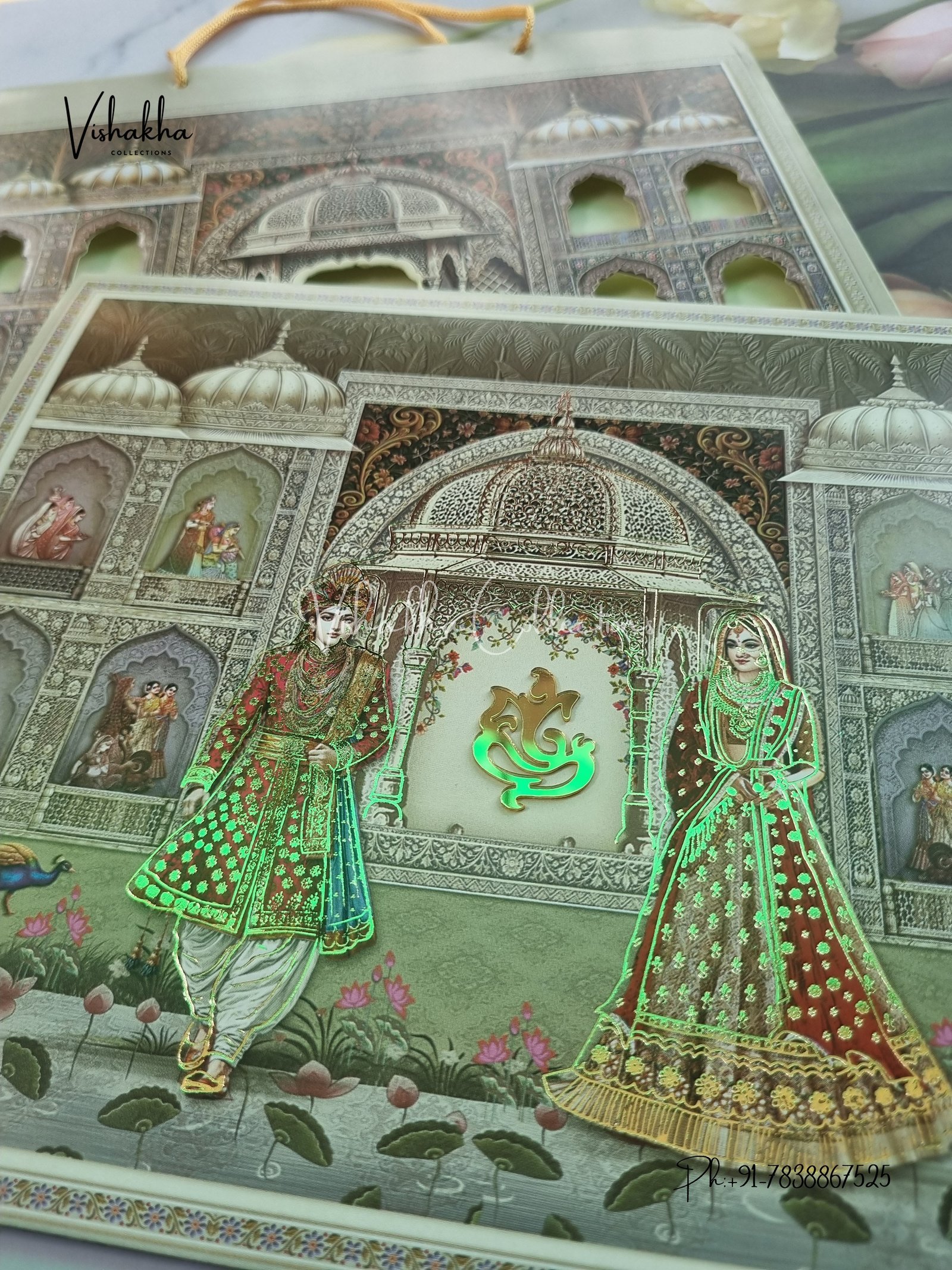 Vishakha Collections presents you beautiful luxury wedding invitation cards with all latest designs and the latest variety. Its just not a wedding invitation card but a beautiful feeling of love and relationship it carries for you. Beautifully printed and packed with a bundle of love. if you like it, dont think again, just go for it.If you are worrying about the quality of the product, send your doubts to us. We are here to help you. If you want in wholesale or bulk, dont forget to contact us.