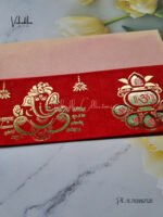 Pink Piano style paper Scroll with Ganesha on lotus Wedding invitation card