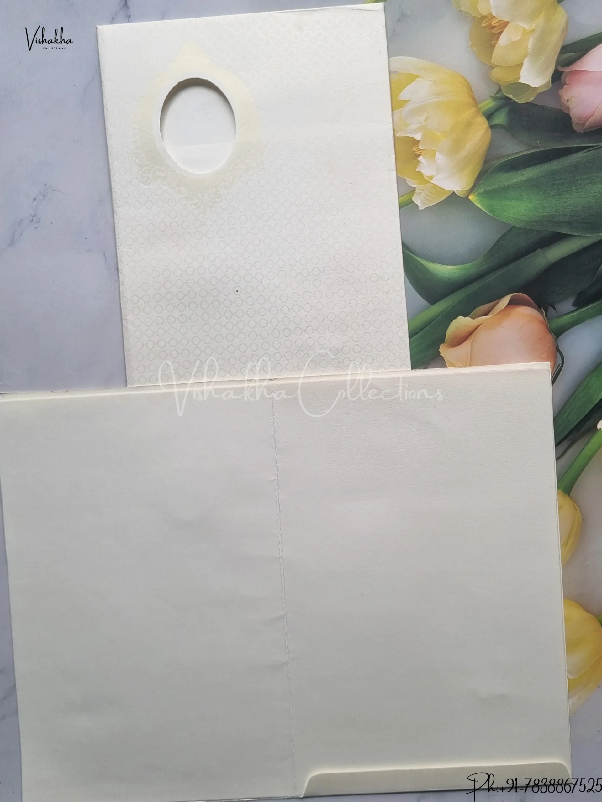 Vishakha Collections presents you beautiful luxury wedding invitation cards with all latest designs and the latest variety. Its just not a wedding invitation card but a beautiful feeling of love and relationship it carries for you. Beautifully printed and packed with a bundle of love. if you like it, dont think again, just go for it.If you are worrying about the quality of the product, send your doubts to us. We are here to help you. If you want in wholesale or bulk, dont forget to contact us.