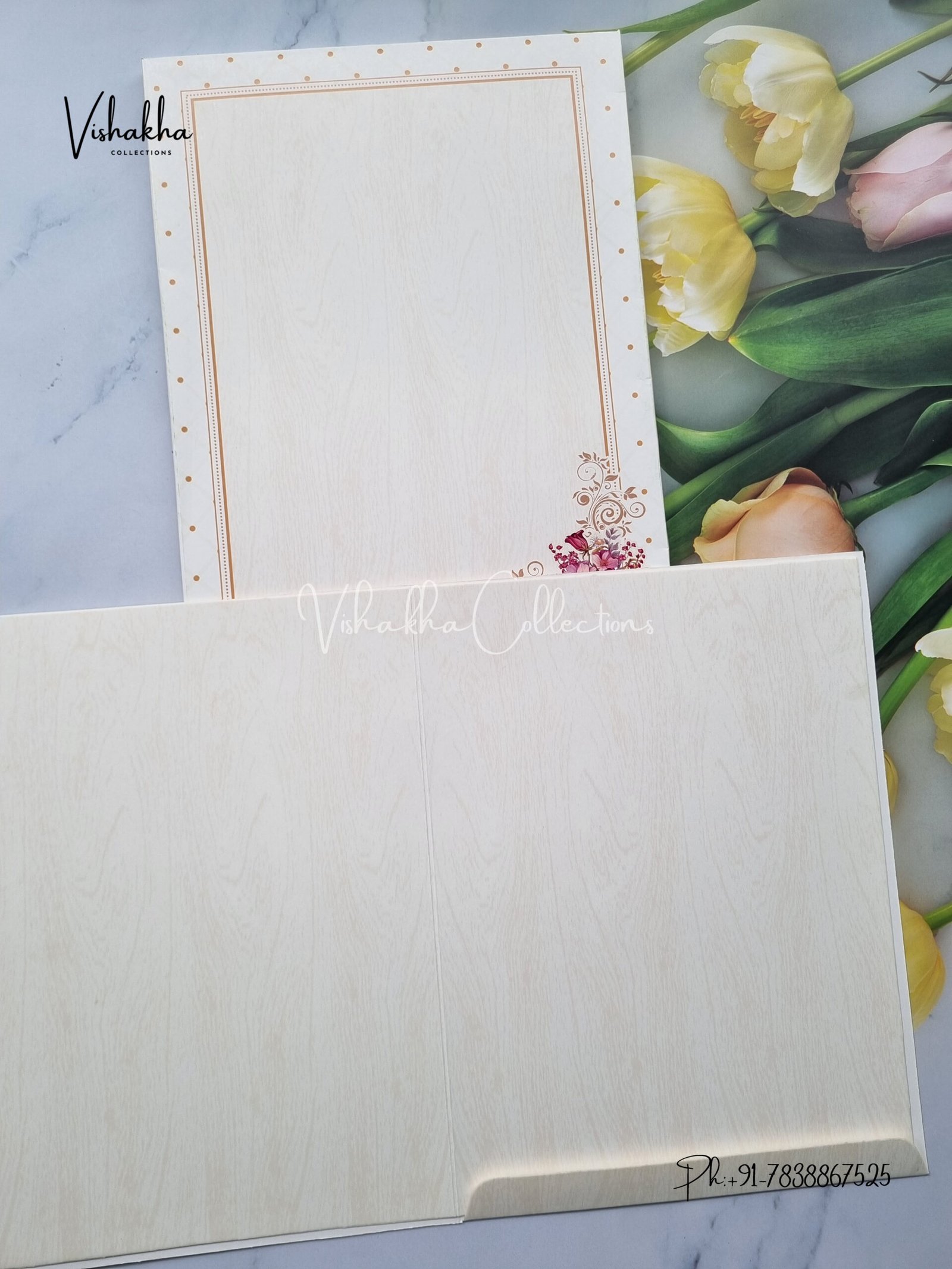Vishakha Collections presents you beautiful luxury wedding invitation cards with all latest designs and the latest variety. Its just not a wedding invitation card but a beautiful feeling of love and relationship it carries for you. Beautifully printed and packed with a bundle of love. if you like it, dont think again, just go for it.If you are worrying about the quality of the product, send your doubts to us. We are here to help you. If you want in wholesale or bulk, dont forget to contact us.