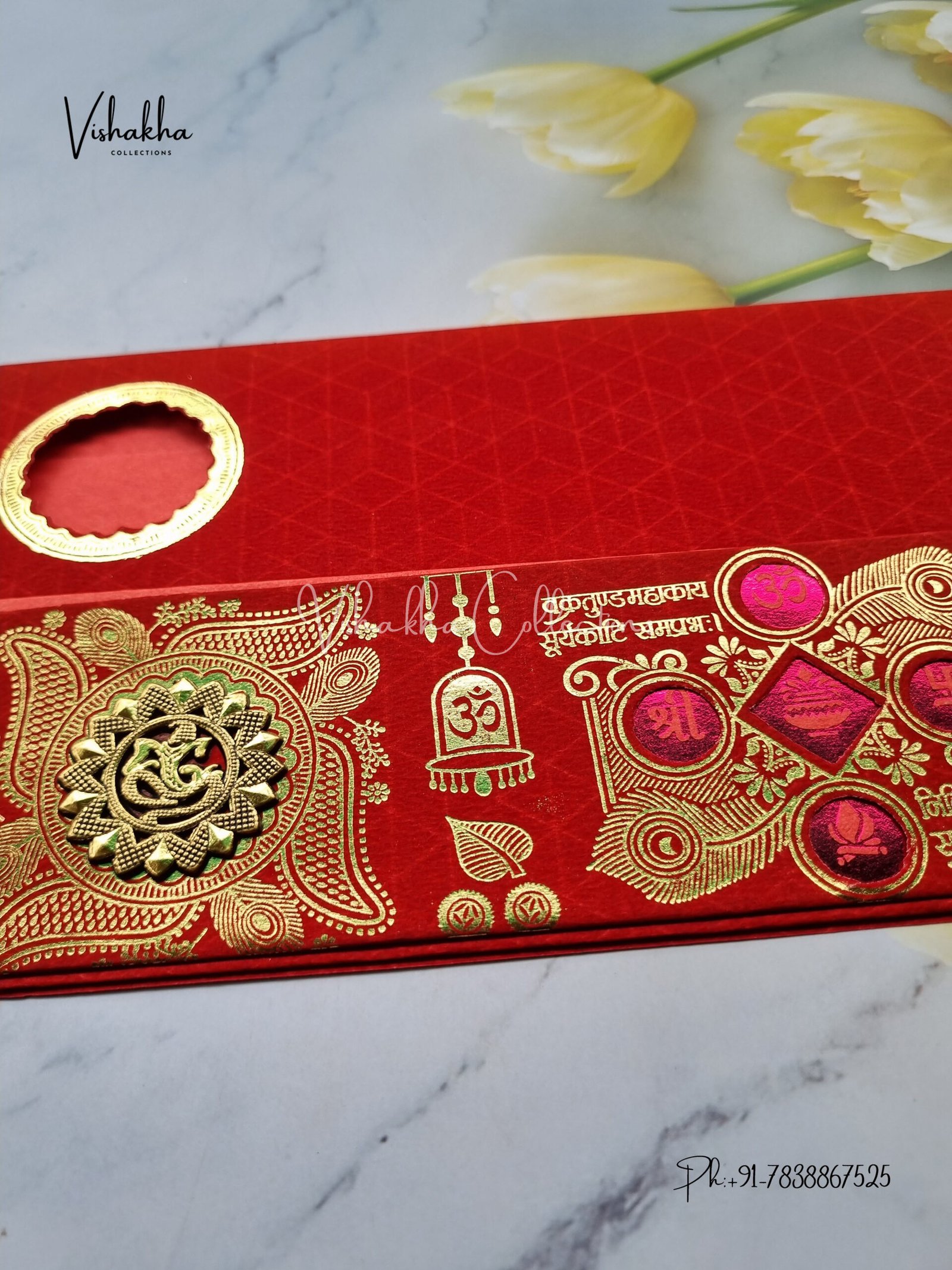 Vishakha Collections presents you beautiful luxury wedding invitation cards with all latest designs and the latest variety. Its just not a wedding invitation card but a beautiful feeling of love and relationship it carries for you. Beautifully printed and packed with a bundle of love. if you like it, dont think again, just go for it.If you are worrying about the quality of the product, send your doubts to us. We are here to help you. If you want in wholesale or bulk, dont forget to contact us.
