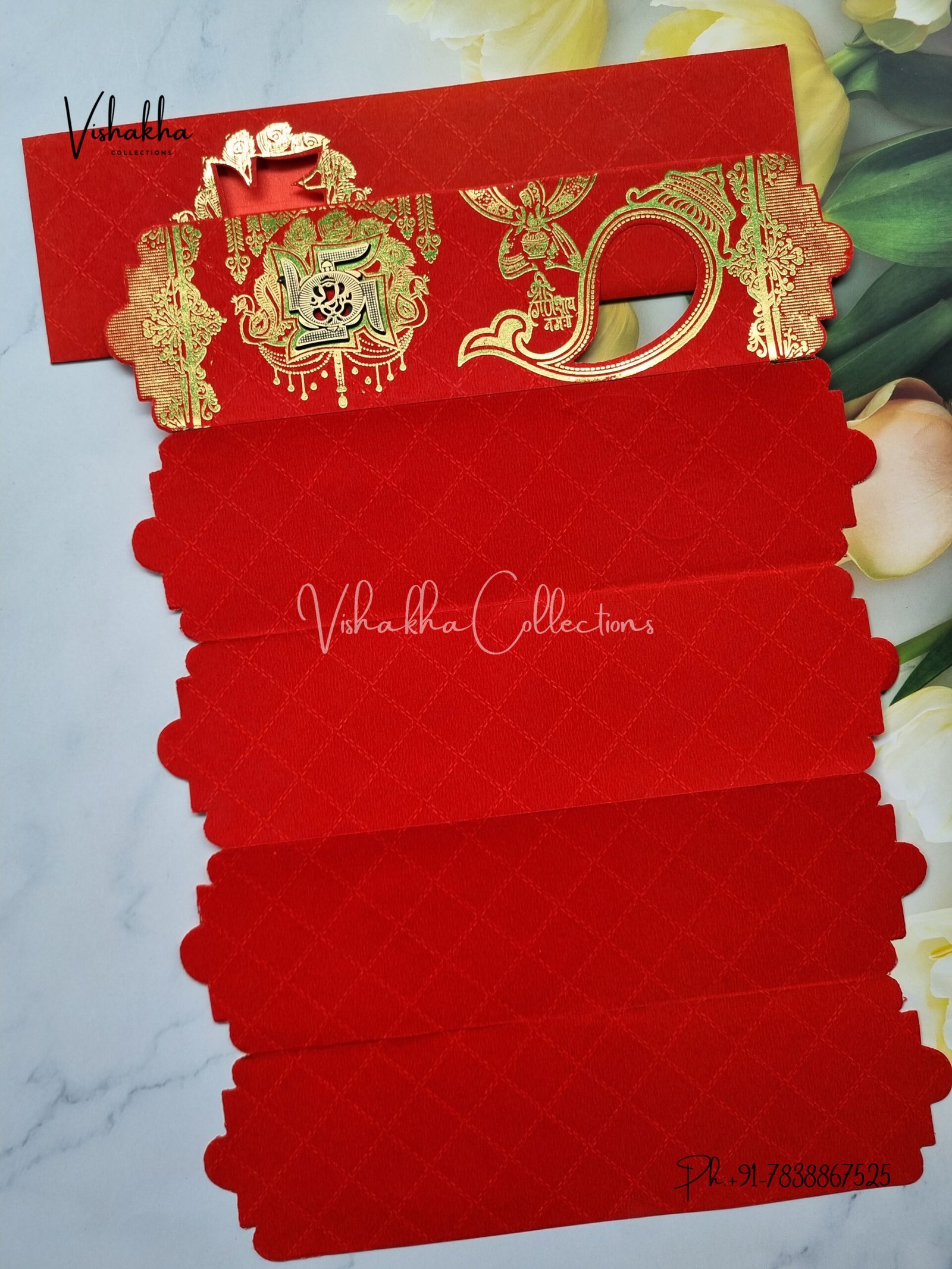 ₹6.60Red Piano style paper Scroll with Swastik Ganesh Hindu Shadi card
