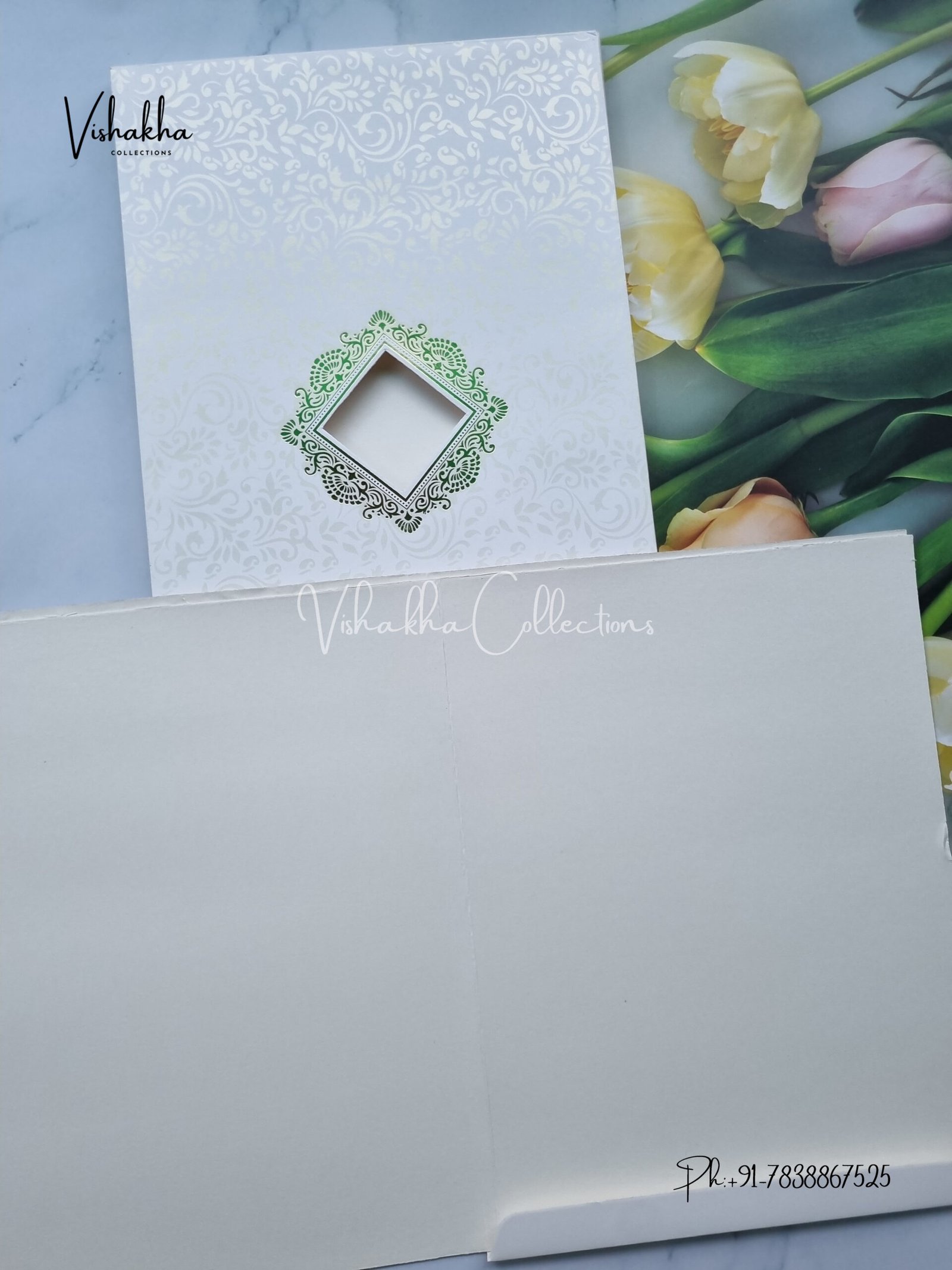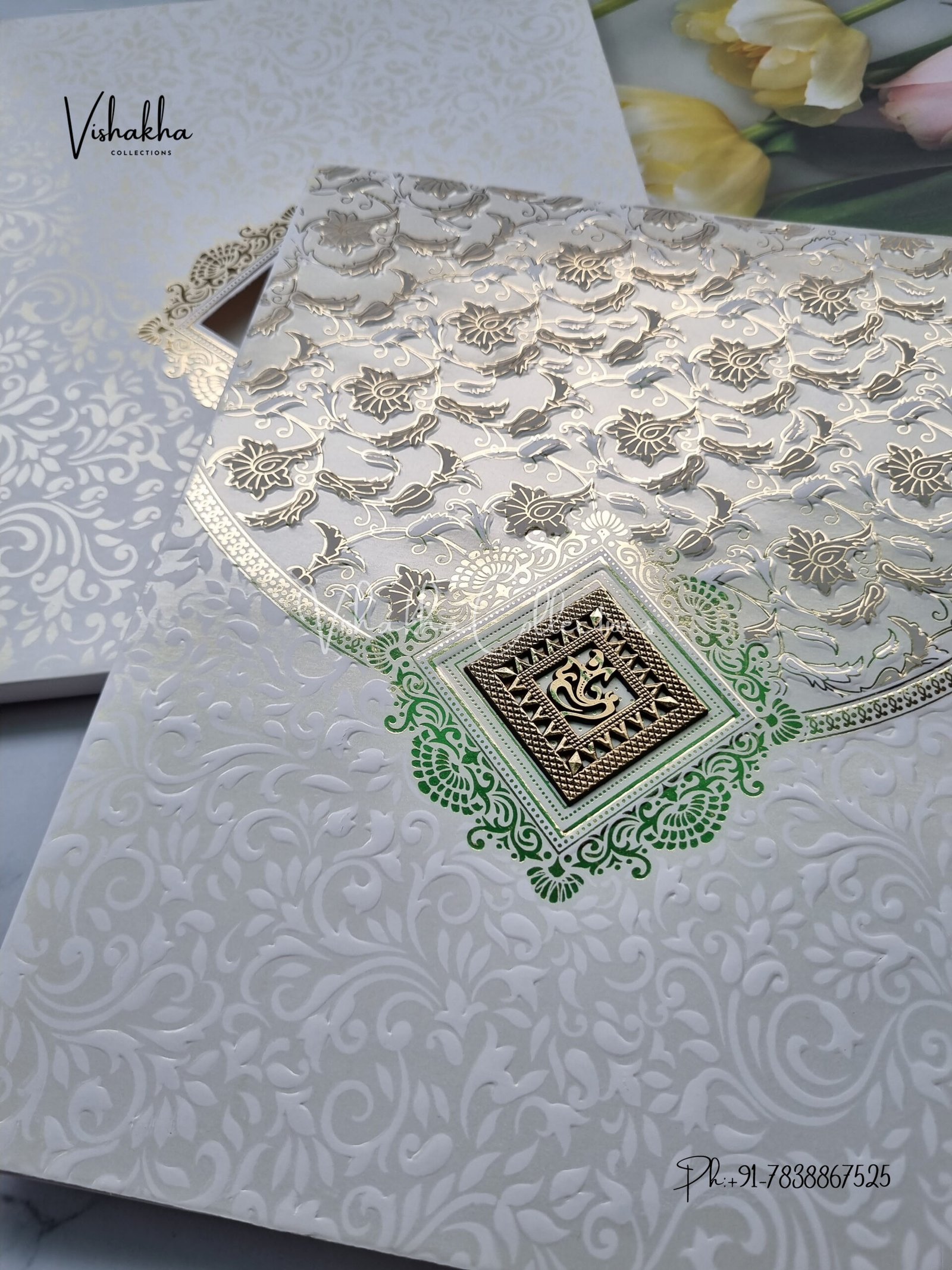 Vishakha Collections presents you beautiful luxury wedding invitation cards with all latest designs and the latest variety. Its just not a wedding invitation card but a beautiful feeling of love and relationship it carries for you. Beautifully printed and packed with a bundle of love. if you like it, dont think again, just go for it.If you are worrying about the quality of the product, send your doubts to us. We are here to help you. If you want in wholesale or bulk, dont forget to contact us.