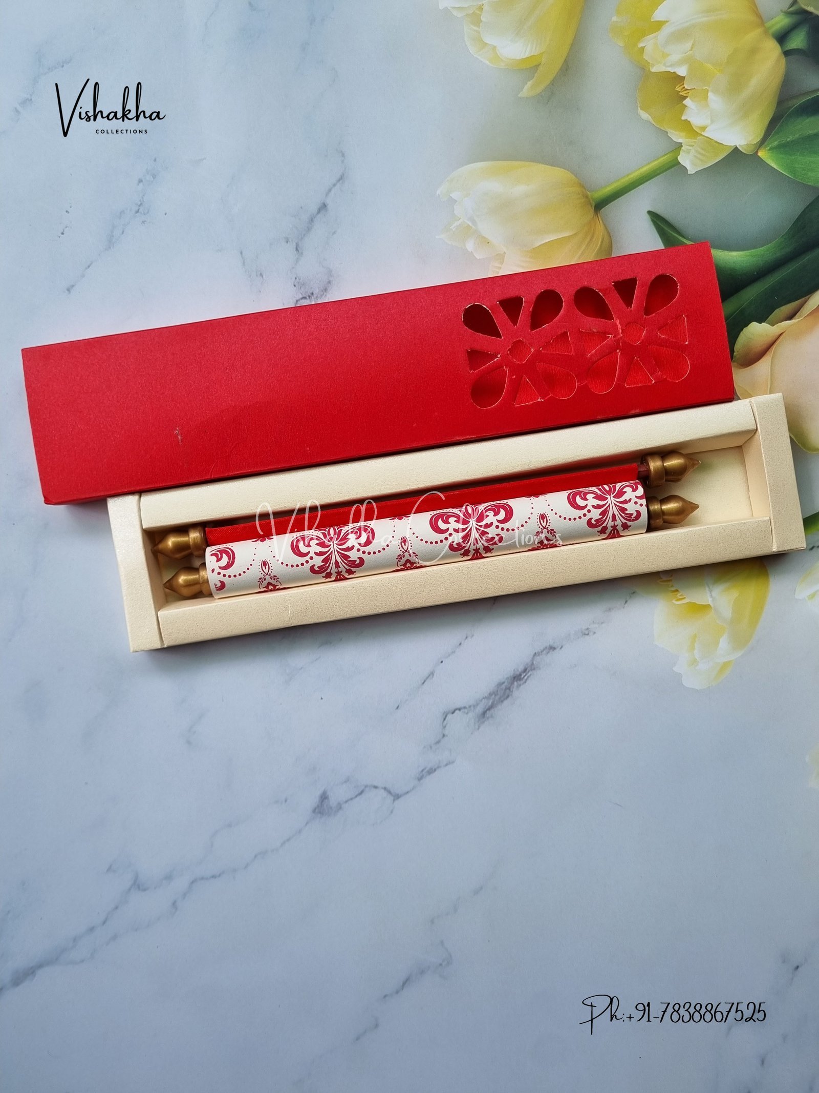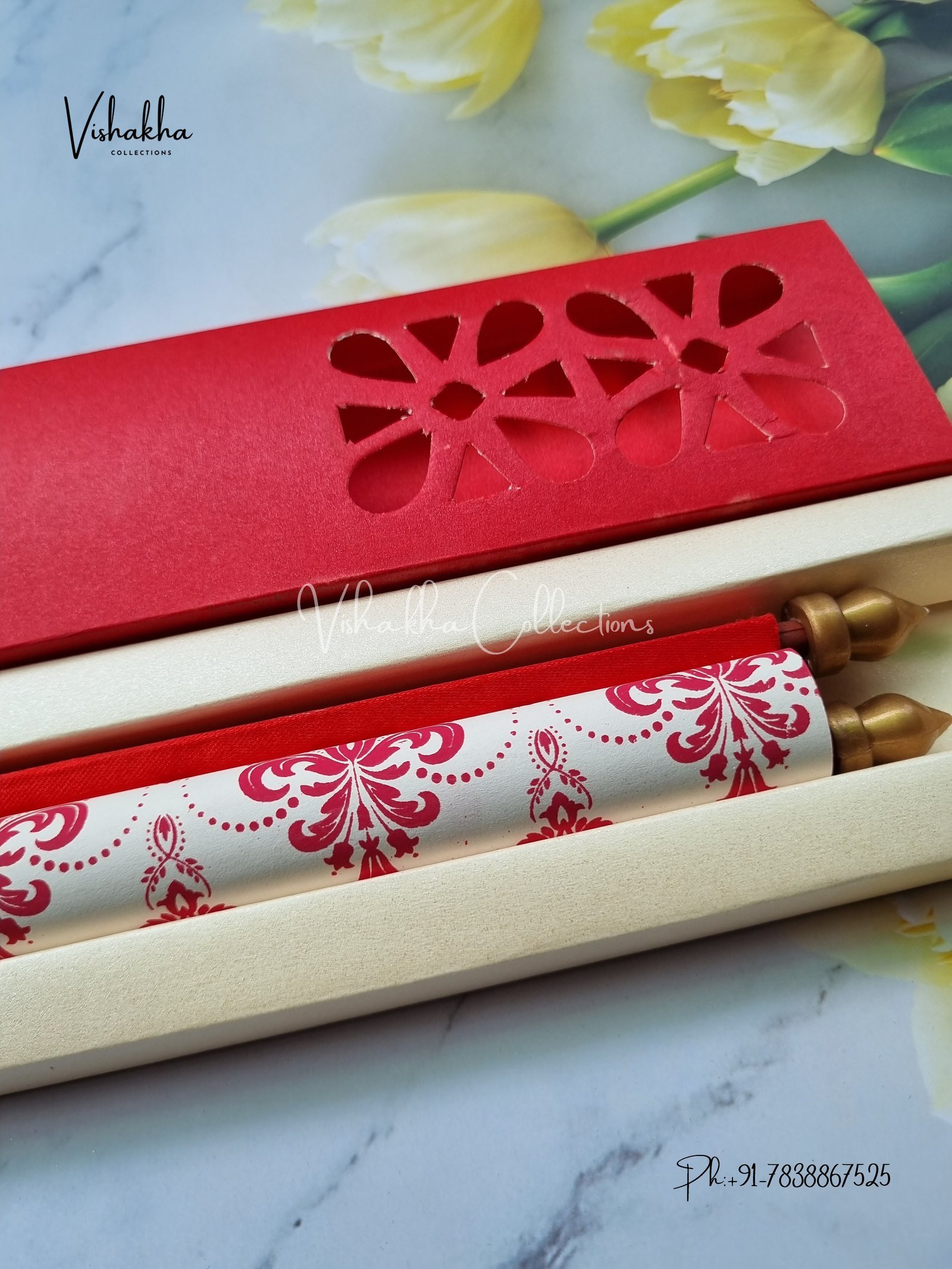 Vishakha Collections presents you beautiful luxury wedding invitation cards with all latest designs and the latest variety. Its just not a wedding invitation card but a beautiful feeling of love and relationship it carries for you. Beautifully printed and packed with a bundle of love. if you like it, dont think again, just go for it.If you are worrying about the quality of the product, send your doubts to us. We are here to help you. If you want in wholesale or bulk, dont forget to contact us.