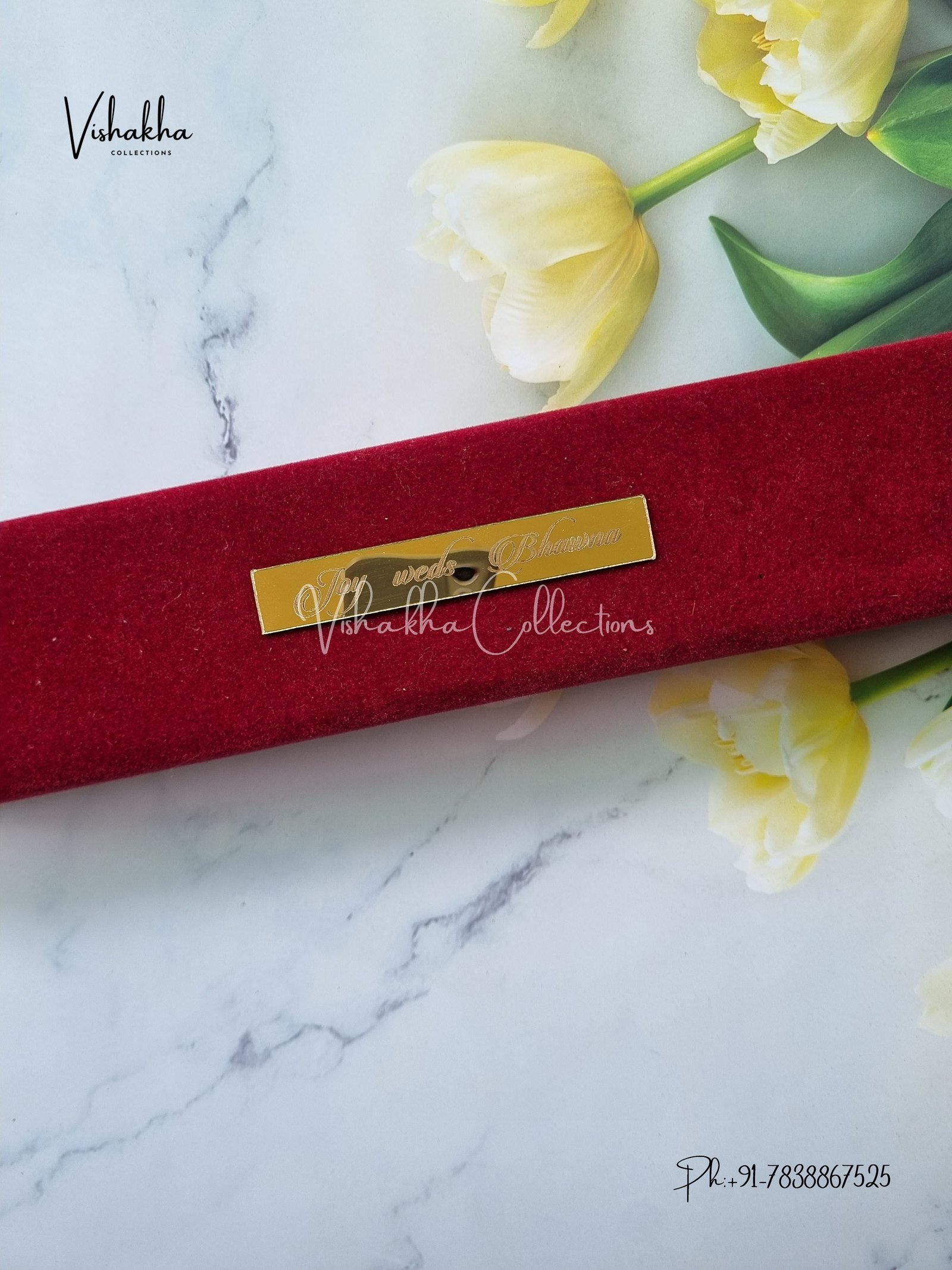 Vishakha Collections presents you beautiful luxury wedding invitation cards with all latest designs and the latest variety. Its just not a wedding invitation card but a beautiful feeling of love and relationship it carries for you. Beautifully printed and packed with a bundle of love. if you like it, dont think again, just go for it.If you are worrying about the quality of the product, send your doubts to us. We are here to help you. If you want in wholesale or bulk, dont forget to contact us.