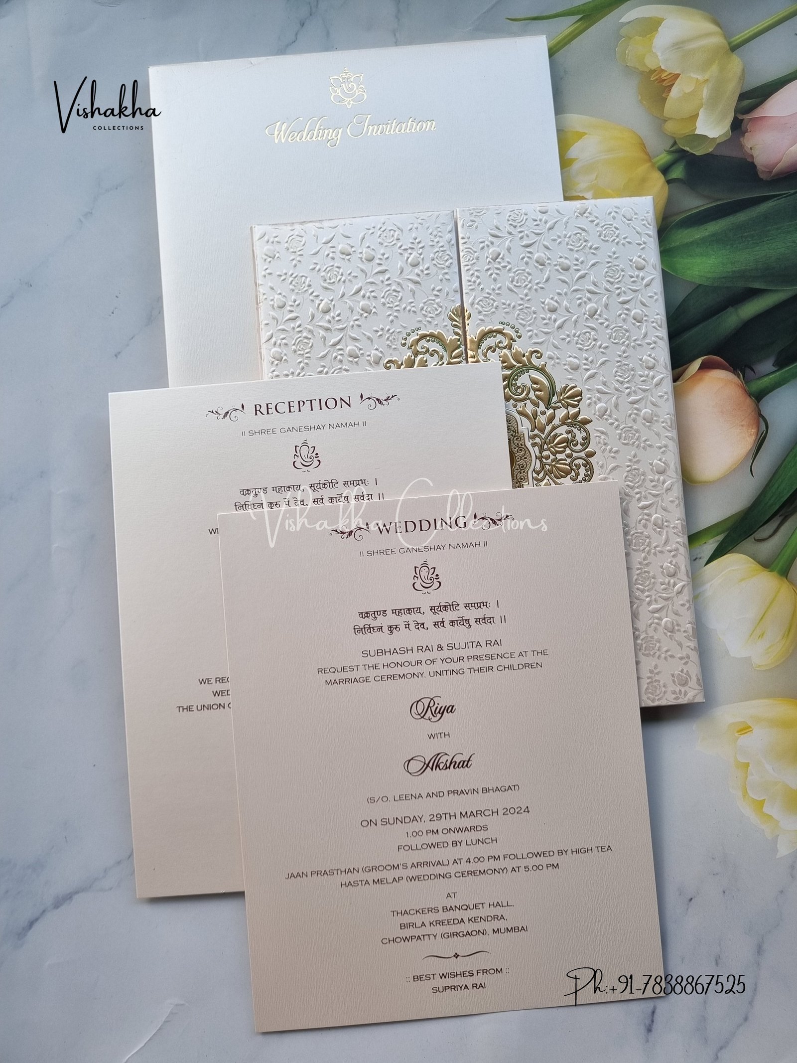Vishakha Collections presents you beautiful luxury wedding invitation cards with all latest designs and the latest variety. Its just not a wedding invitation card but a beautiful feeling of love and relationship it carries for you. Beautifully printed and packed with a bundle of love. if you like it, dont think again, just go for it.If you are worrying about the quality of the product, send your doubts to us. We are here to help you. If you want in wholesale or bulk, dont forget to contact us.