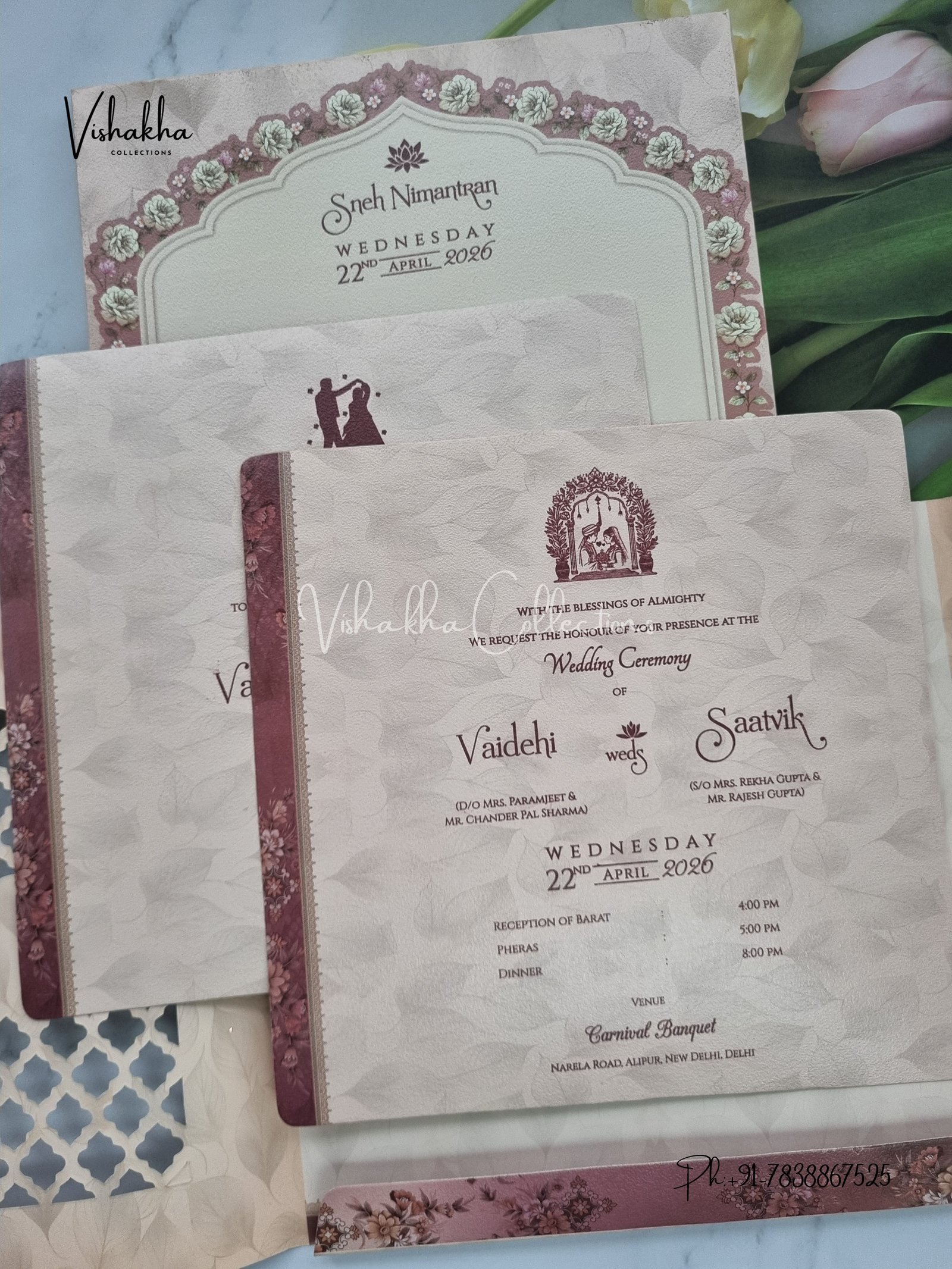 Vishakha Collections presents you beautiful luxury wedding invitation cards with all latest designs and the latest variety. Its just not a wedding invitation card but a beautiful feeling of love and relationship it carries for you. Beautifully printed and packed with a bundle of love. if you like it, dont think again, just go for it.If you are worrying about the quality of the product, send your doubts to us. We are here to help you. If you want in wholesale or bulk, dont forget to contact us.