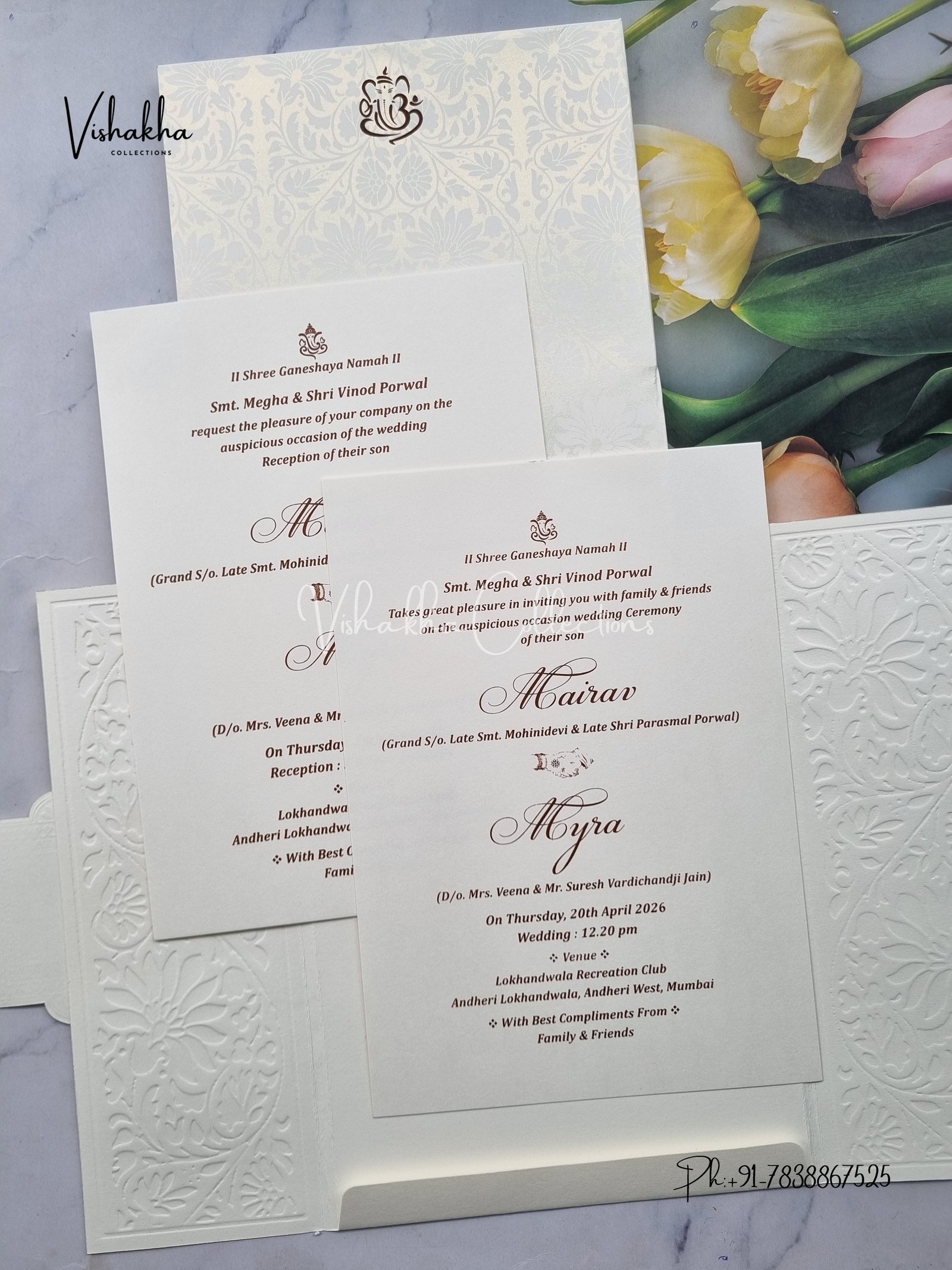 Semi Box Hindu Muslim Christian Sikh Padded white Colored invitation Cards SK-3507