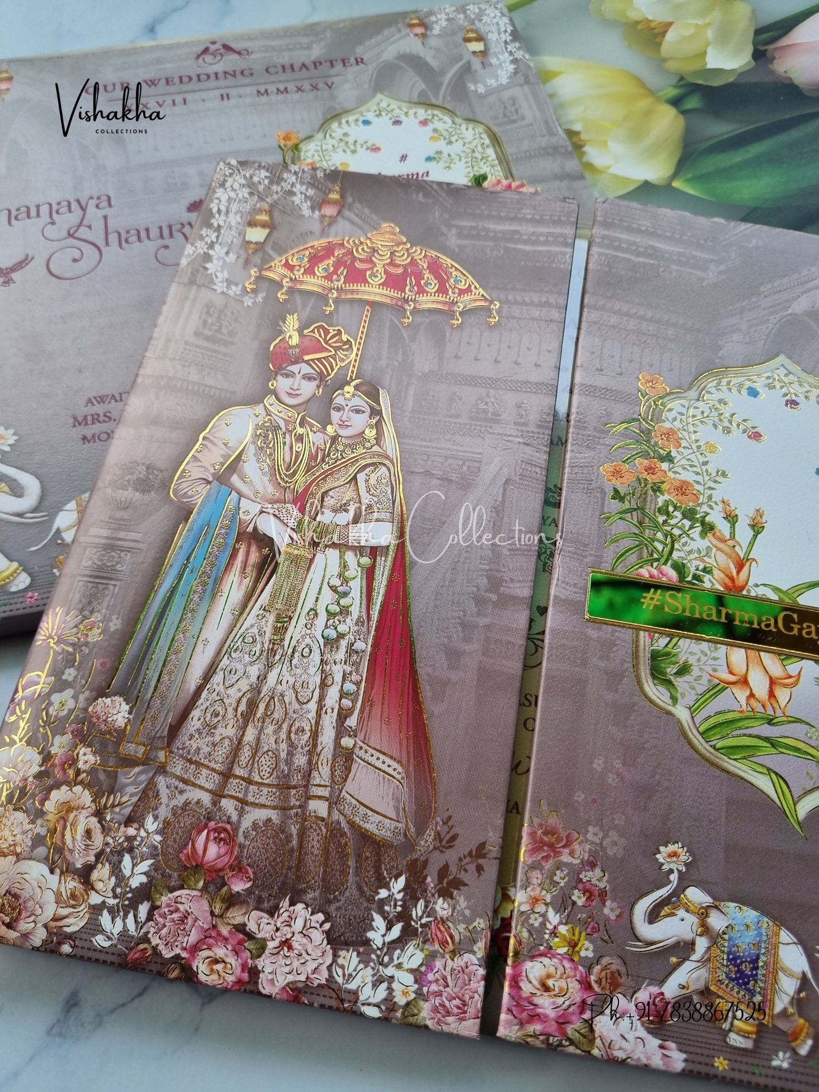 Semi Box Hathi Dulah Dulhan Hindu Padded invitation Cards ATS-P139