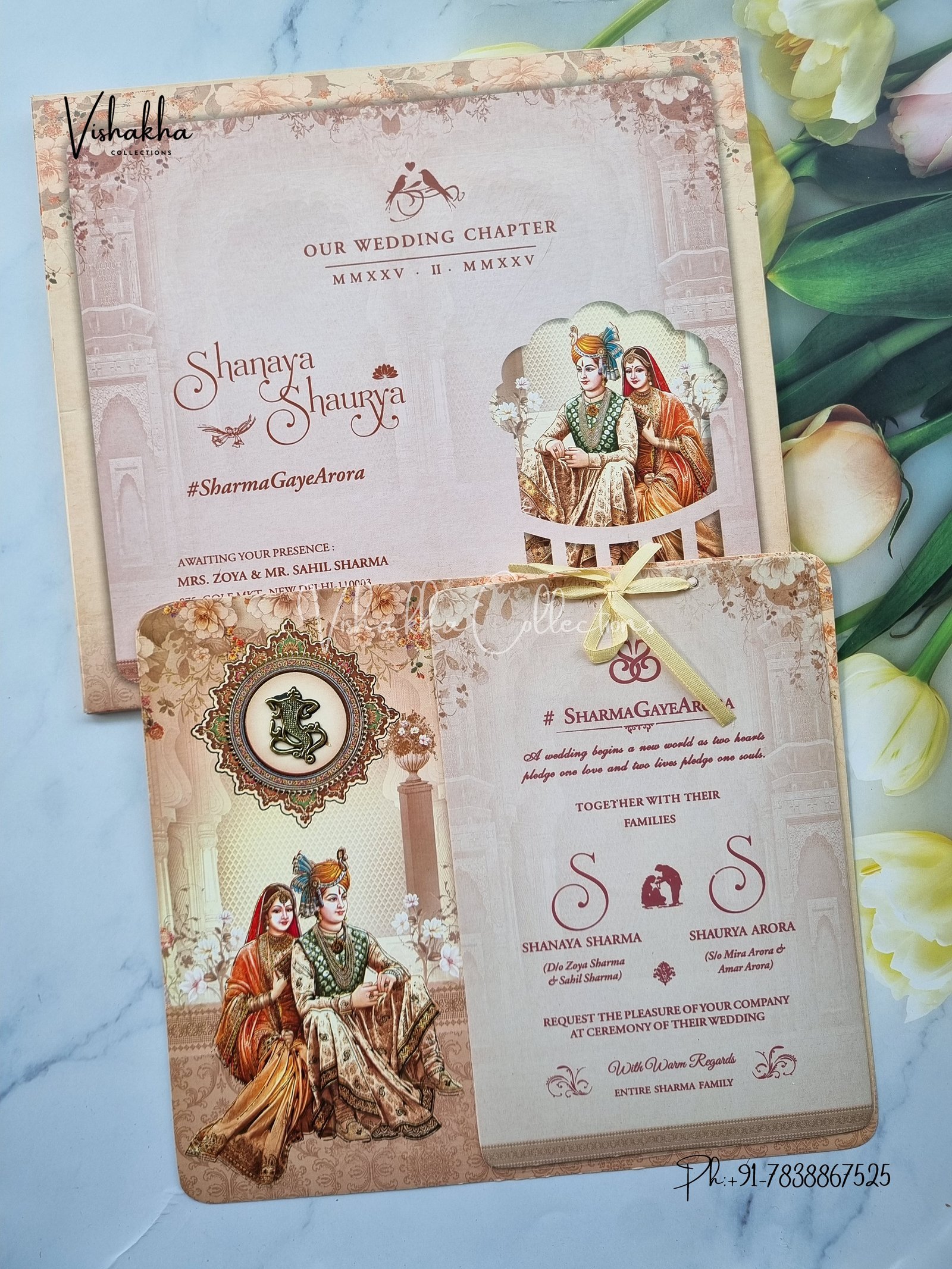 Vishakha Collections presents you beautiful luxury wedding invitation cards with all latest designs and the latest variety. Its just not a wedding invitation card but a beautiful feeling of love and relationship it carries for you. Beautifully printed and packed with a bundle of love. if you like it, dont think again, just go for it.If you are worrying about the quality of the product, send your doubts to us. We are here to help you. If you want in wholesale or bulk, dont forget to contact us.
