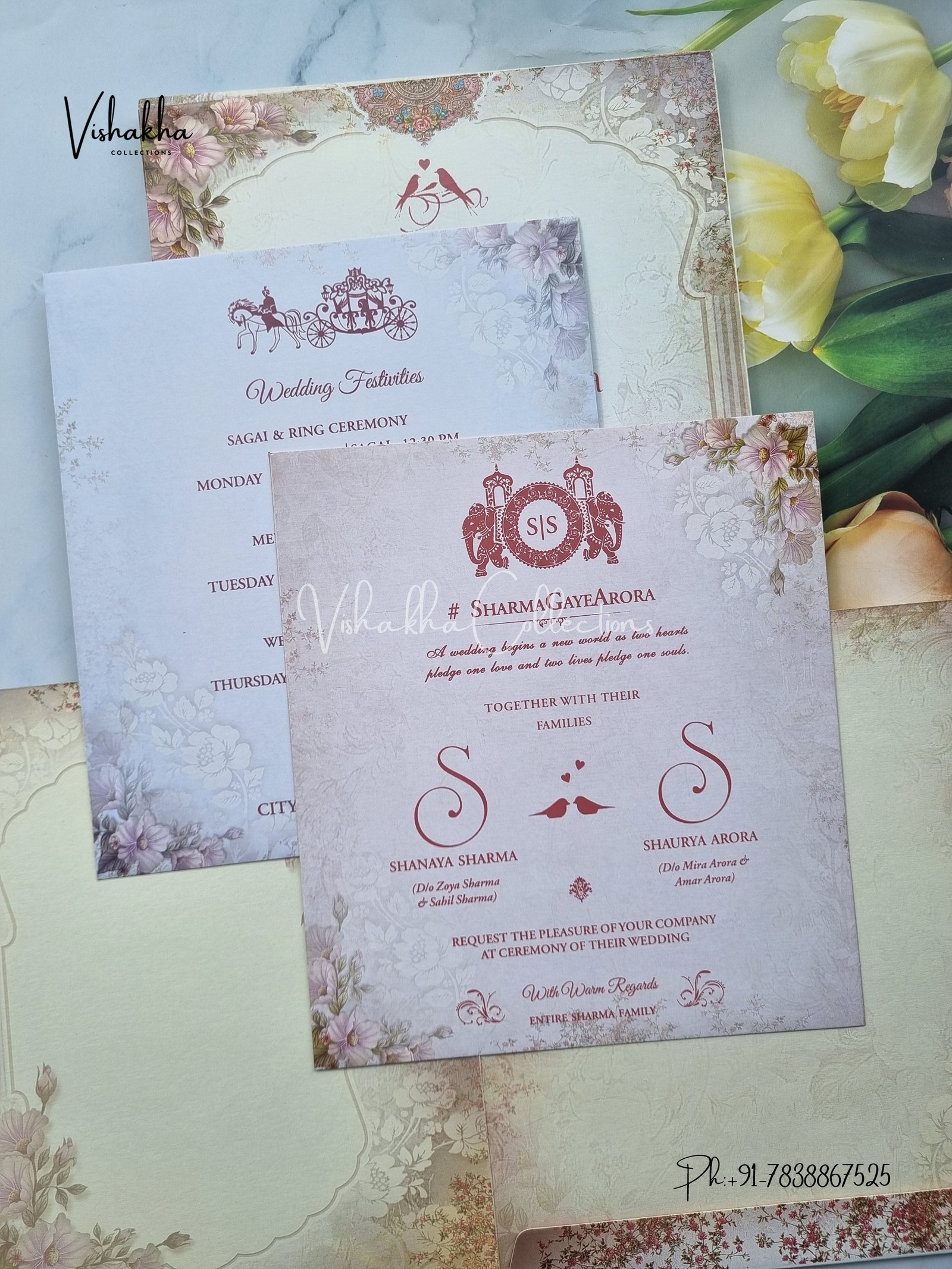 Vishakha Collections presents you beautiful luxury wedding invitation cards with all latest designs and the latest variety. Its just not a wedding invitation card but a beautiful feeling of love and relationship it carries for you. Beautifully printed and packed with a bundle of love. if you like it, dont think again, just go for it.If you are worrying about the quality of the product, send your doubts to us. We are here to help you. If you want in wholesale or bulk, dont forget to contact us.