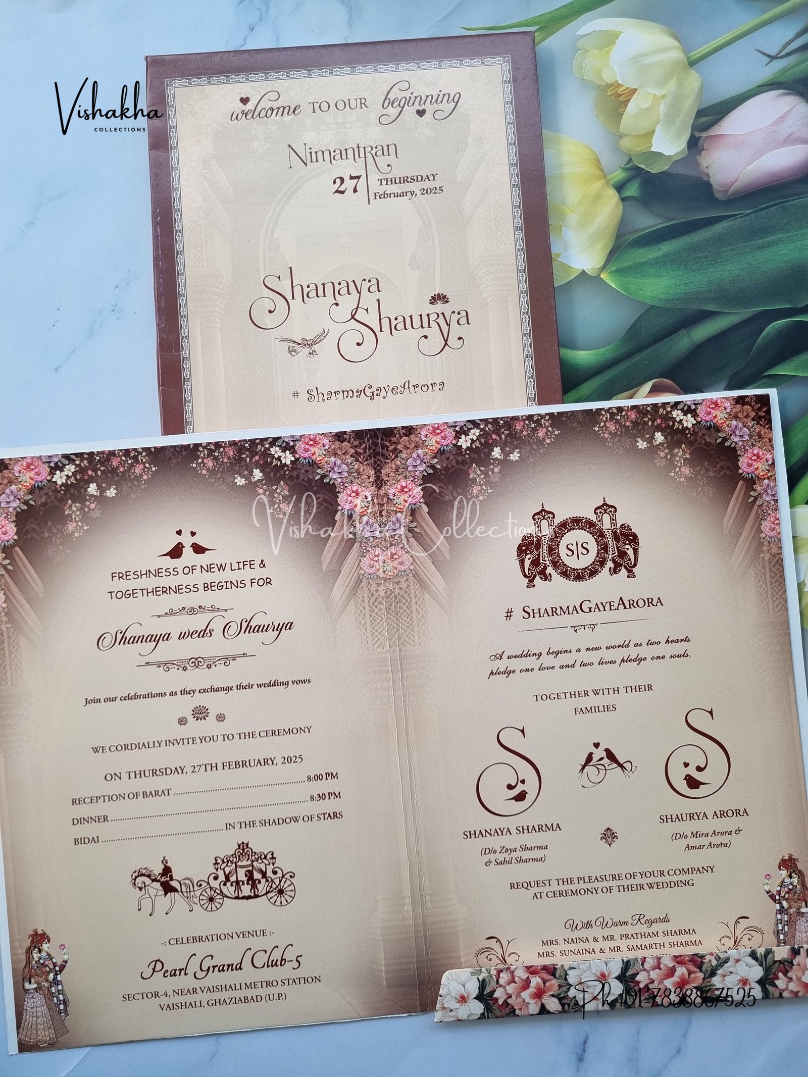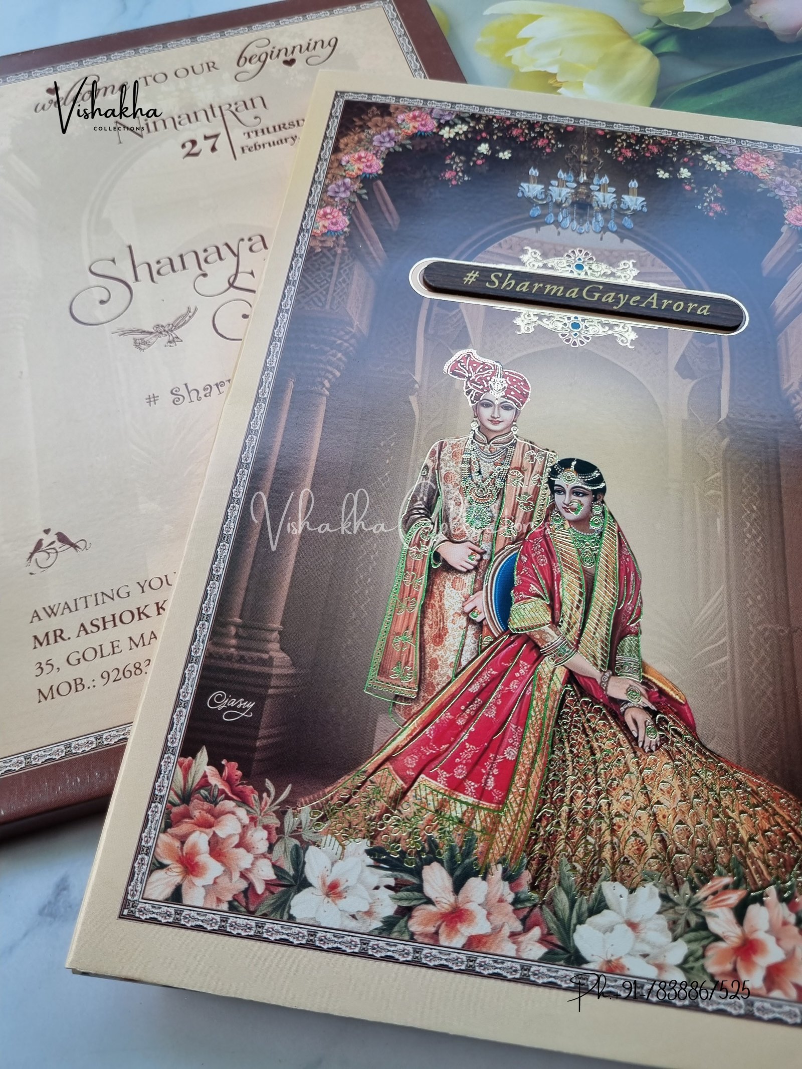 Vishakha Collections presents you beautiful luxury wedding invitation cards with all latest designs and the latest variety. Its just not a wedding invitation card but a beautiful feeling of love and relationship it carries for you. Beautifully printed and packed with a bundle of love. if you like it, dont think again, just go for it.If you are worrying about the quality of the product, send your doubts to us. We are here to help you. If you want in wholesale or bulk, dont forget to contact us.
