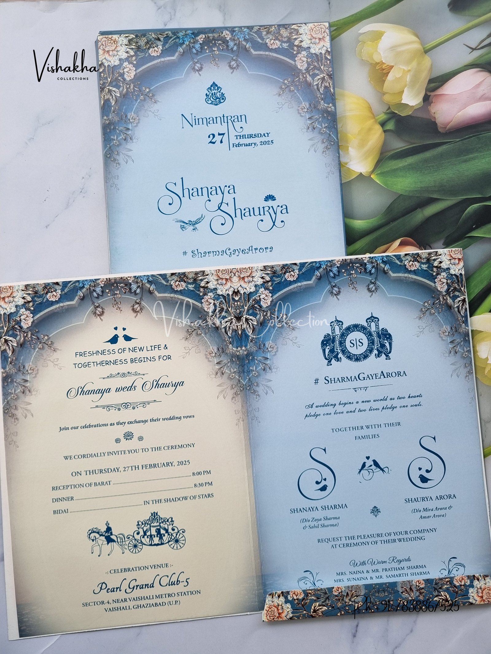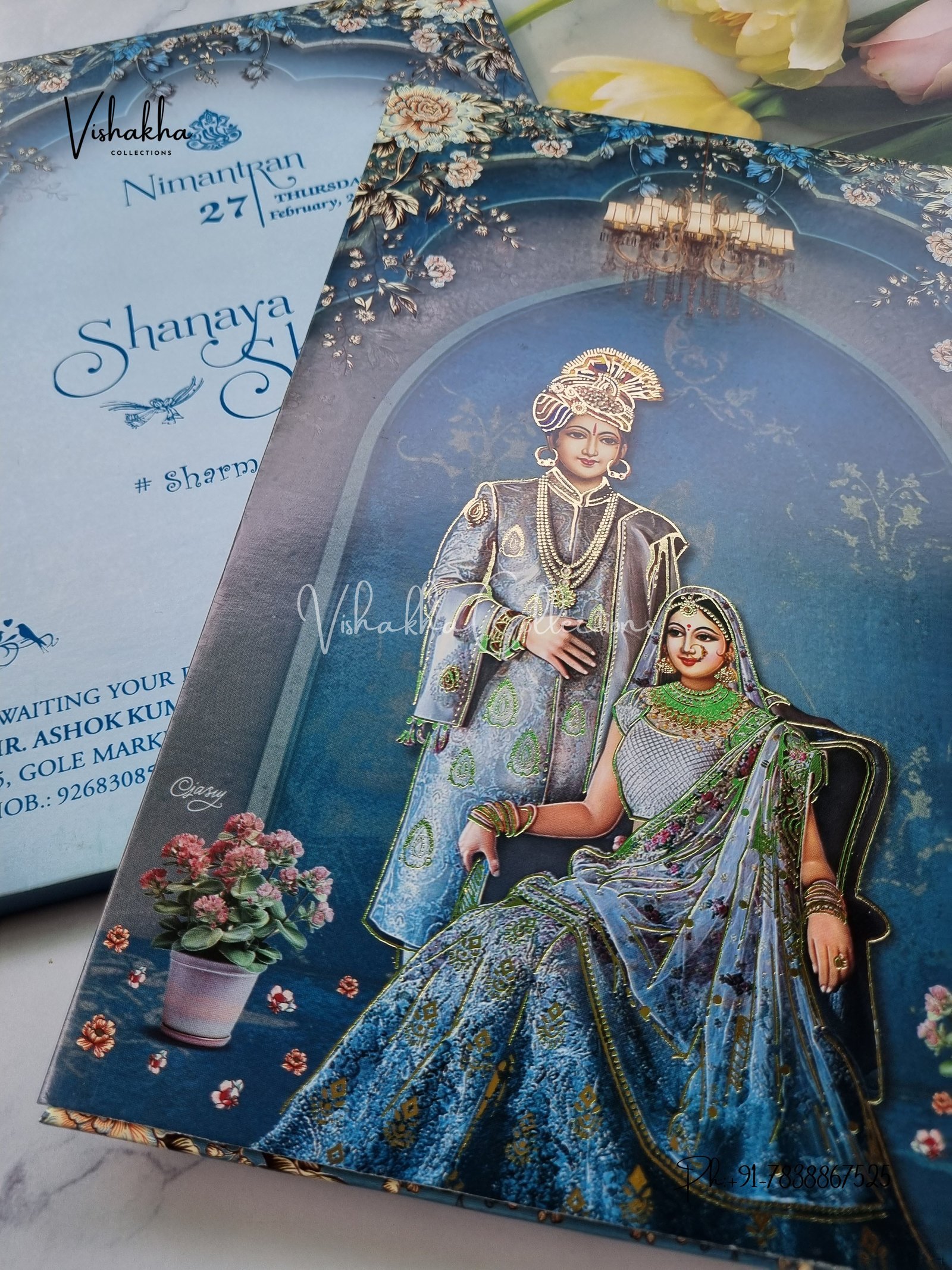 Vishakha Collections presents you beautiful luxury wedding invitation cards with all latest designs and the latest variety. Its just not a wedding invitation card but a beautiful feeling of love and relationship it carries for you. Beautifully printed and packed with a bundle of love. if you like it, dont think again, just go for it.If you are worrying about the quality of the product, send your doubts to us. We are here to help you. If you want in wholesale or bulk, dont forget to contact us.