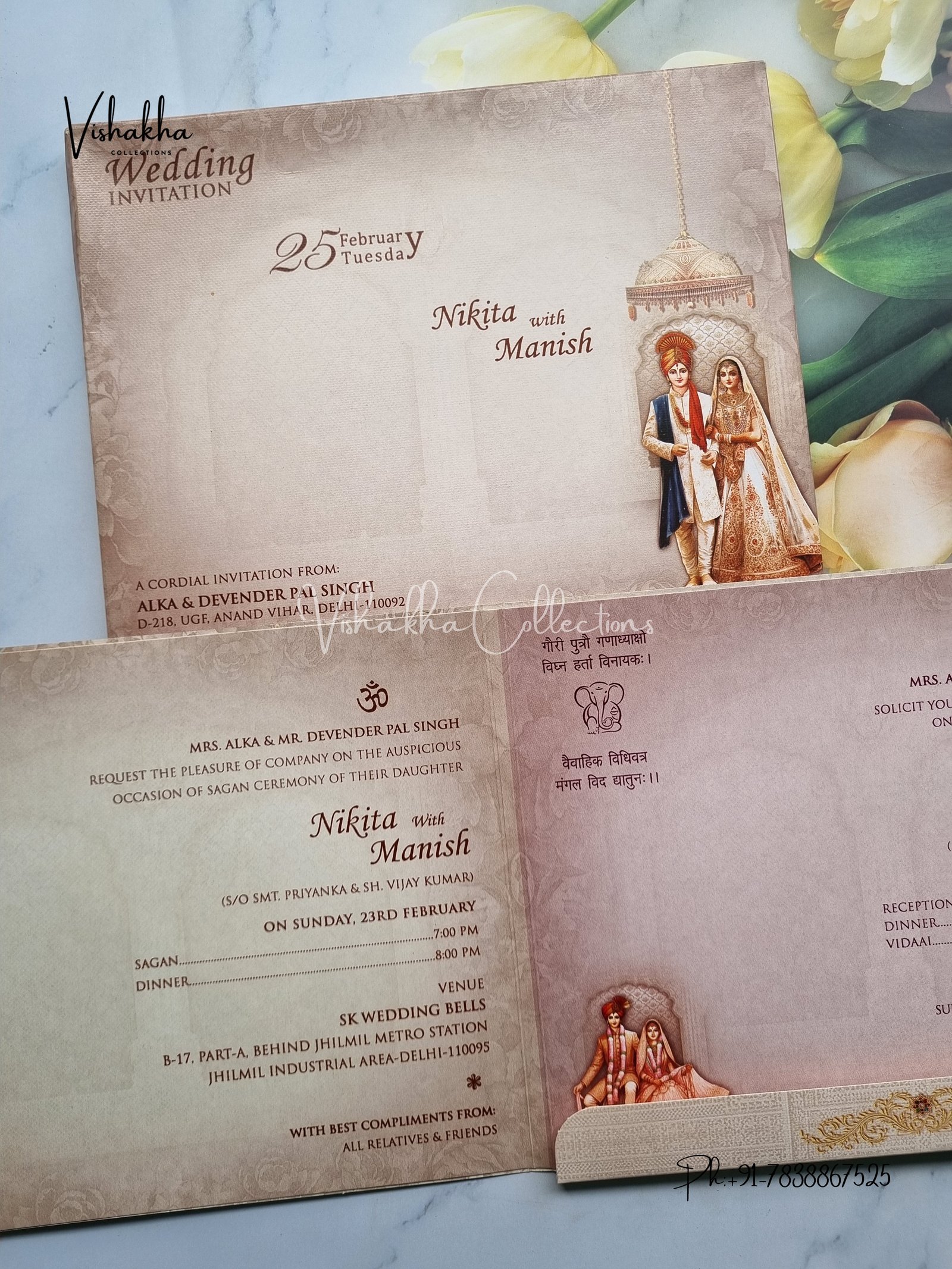 Semi Box Hathi Dulah Dulhan Double Door Hindu invitation Cards EJ-4086