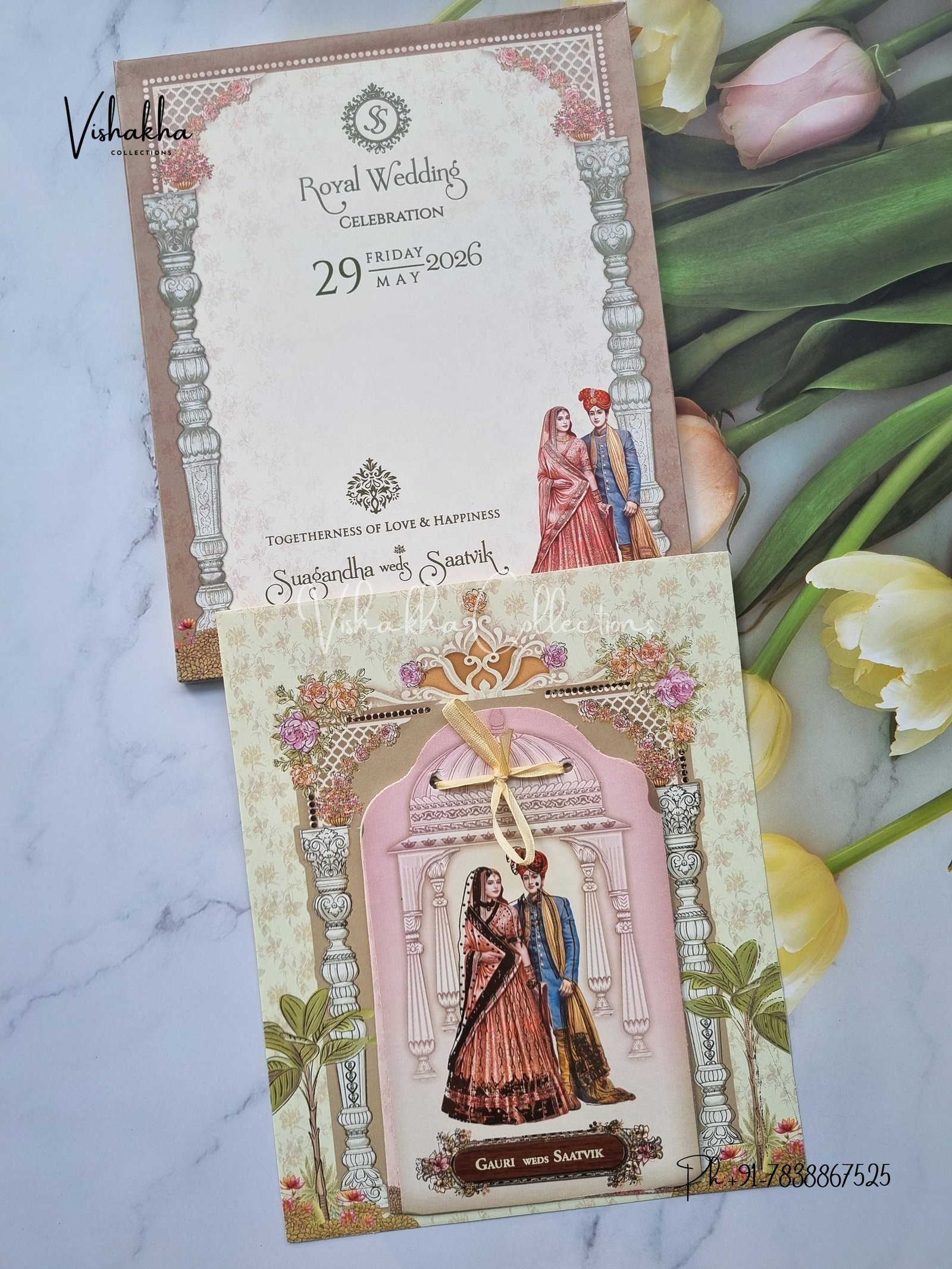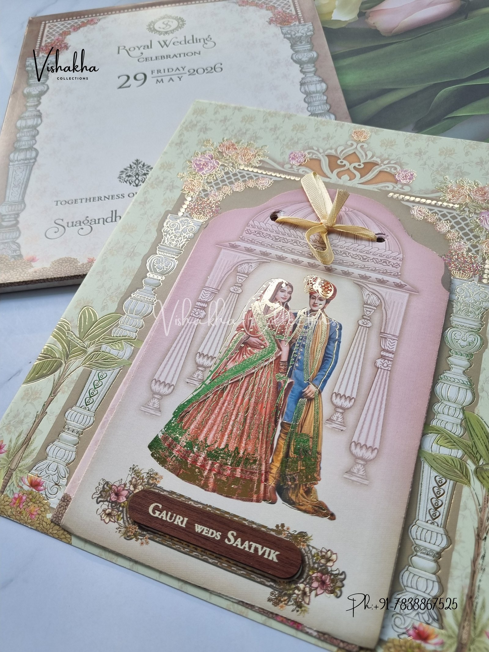 Semi Box Dulah Dulhan Themed Flower Themed Hindu Wedding Unique Color Wedding invitation Cards - CR-5067