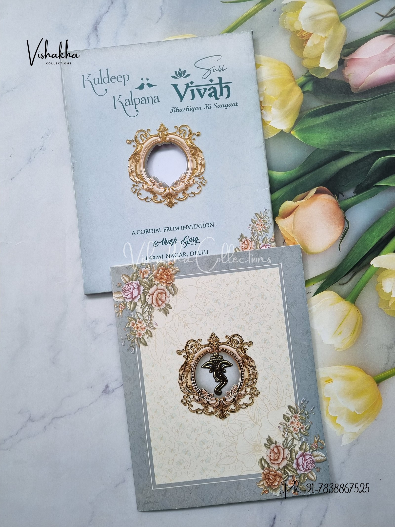 ₹25.00Semi Box Flower Hindu Muslim Christian Jain Sikh Greyish Blue Colored wedding invitation Cards NA-1125-134