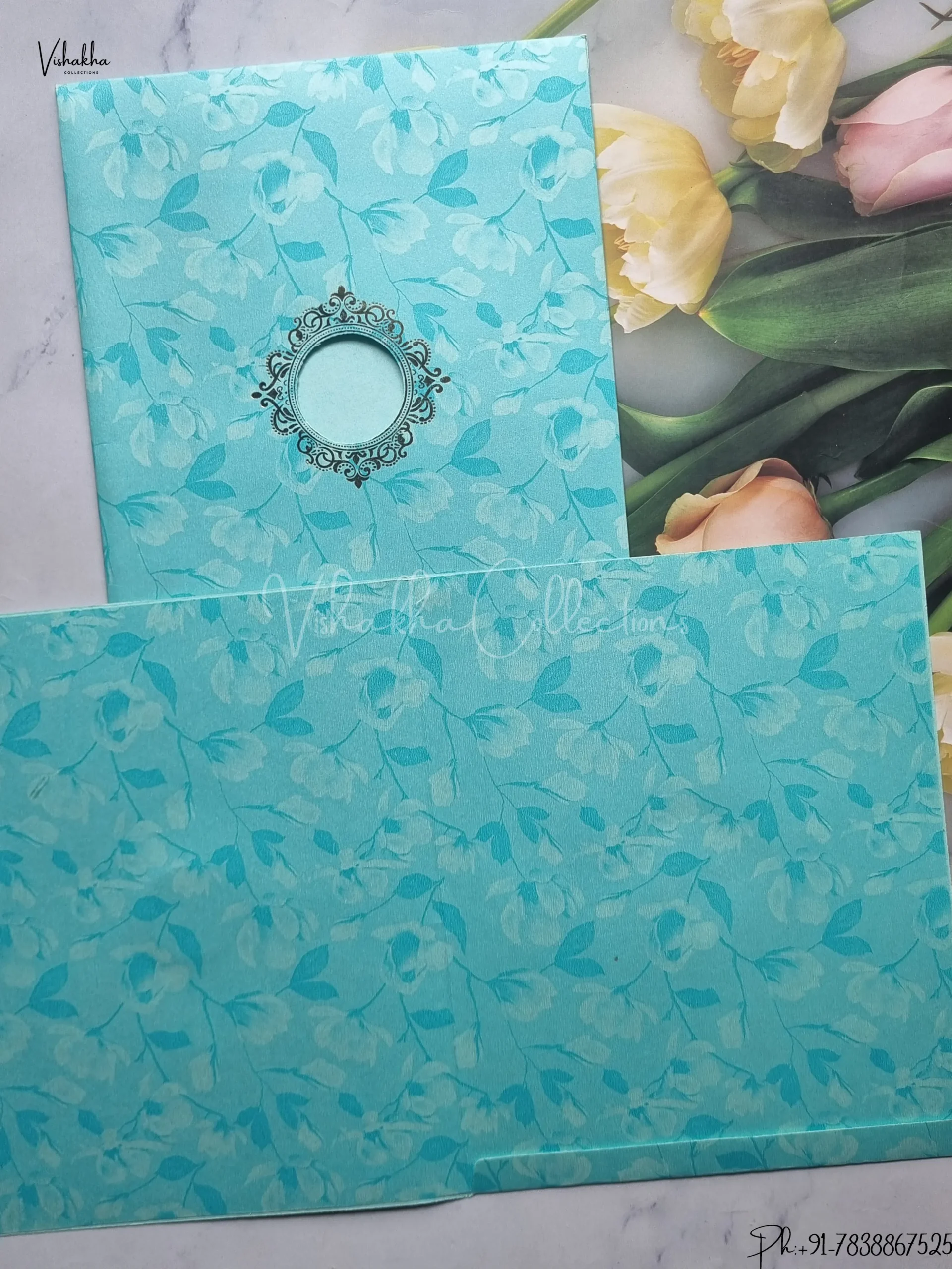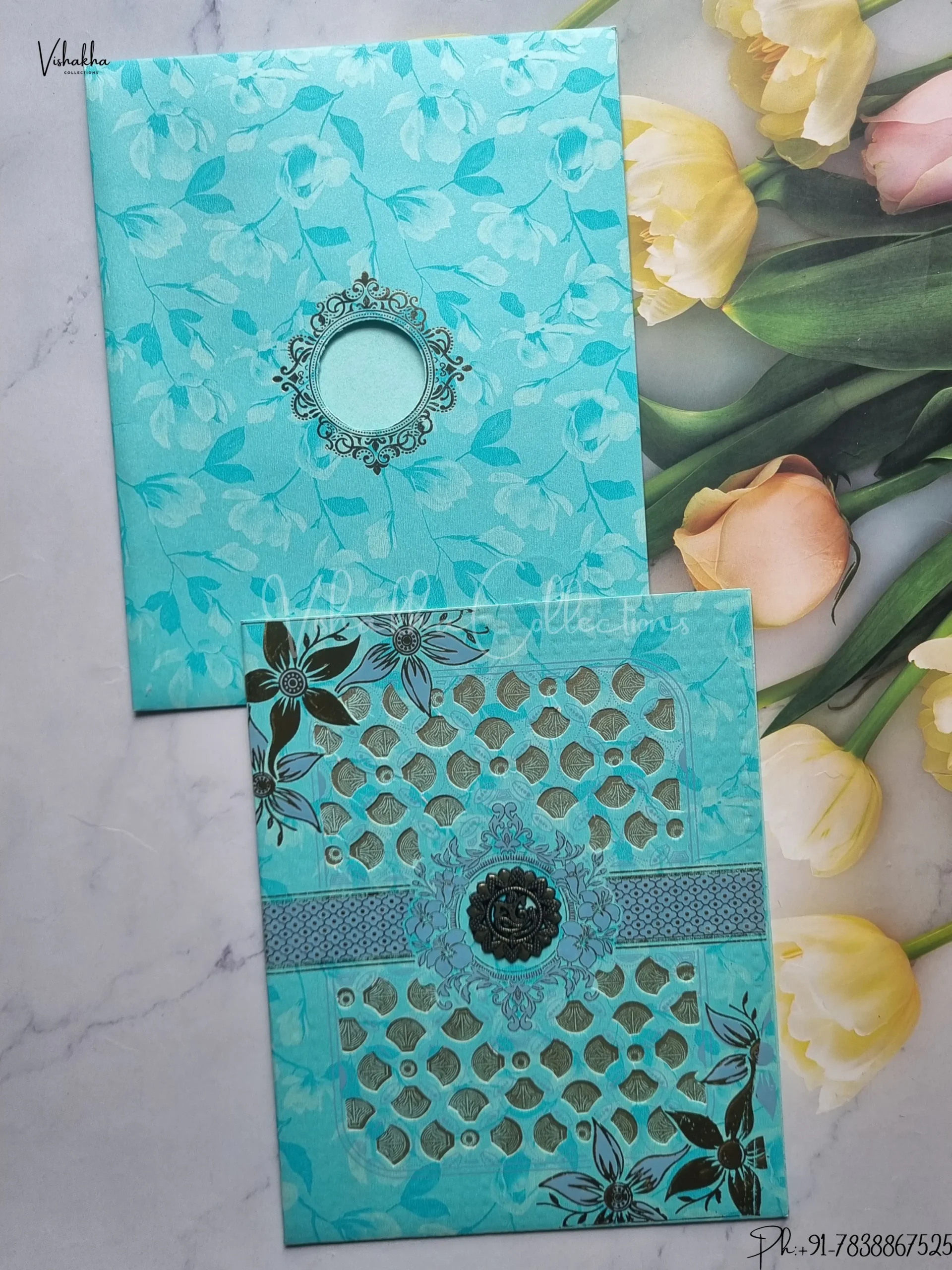 Vishakha Collections presents you beautiful luxury wedding invitation cards with all latest designs and the latest variety. Its just not a wedding invitation card but a beautiful feeling of love and relationship it carries for you. Beautifully printed and packed with a bundle of love. if you like it, dont think again, just go for it.If you are worrying about the quality of the product, send your doubts to us. We are here to help you. If you want in wholesale or bulk, dont forget to contact us.