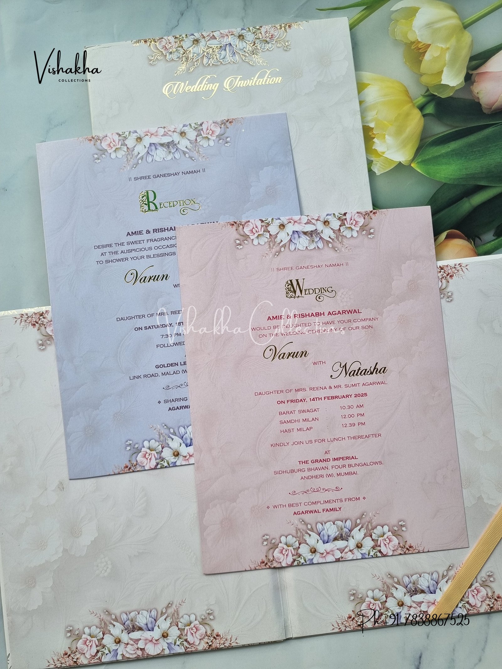 ₹272.00Semi Box Flower Hindu Muslim Christian Jain Sikh Padded invitation Cards WD-9055