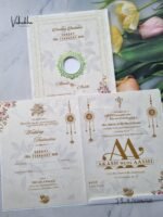 Vishakha Collections presents you beautiful luxury wedding invitation cards with all latest designs and the latest variety. Its just not a wedding invitation card but a beautiful feeling of love and relationship it carries for you. Beautifully printed and packed with a bundle of love. if you like it, dont think again, just go for it.If you are worrying about the quality of the product, send your doubts to us. We are here to help you. If you want in wholesale or bulk, dont forget to contact us.