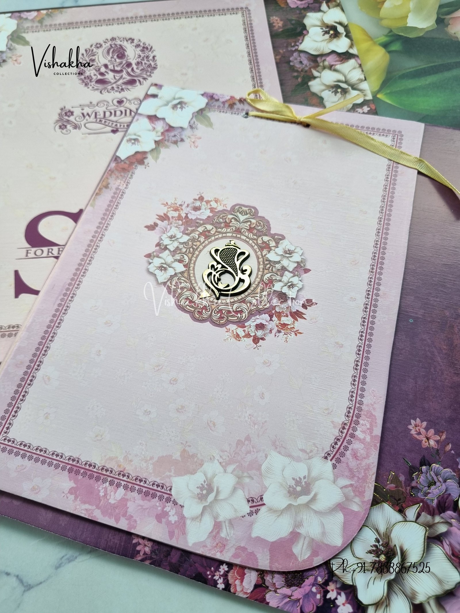 Vishakha Collections presents you beautiful luxury wedding invitation cards with all latest designs and the latest variety. Its just not a wedding invitation card but a beautiful feeling of love and relationship it carries for you. Beautifully printed and packed with a bundle of love. if you like it, dont think again, just go for it.If you are worrying about the quality of the product, send your doubts to us. We are here to help you. If you want in wholesale or bulk, dont forget to contact us.