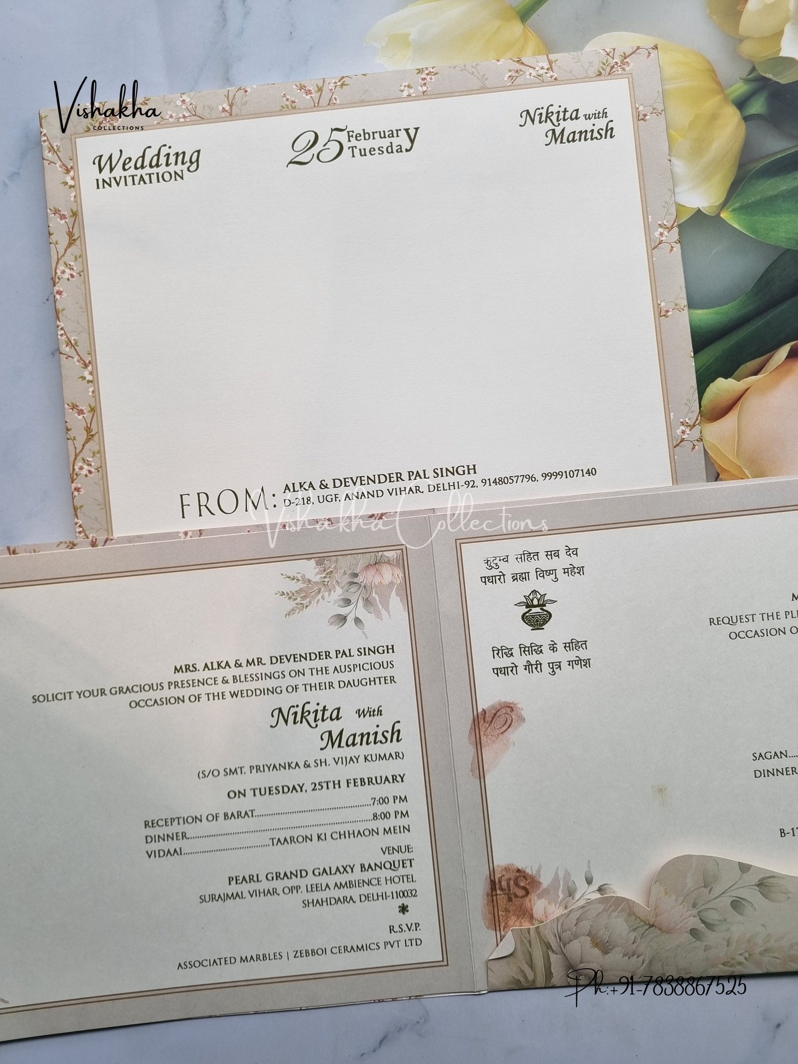 Vishakha Collections presents you beautiful luxury wedding invitation cards with all latest designs and the latest variety. Its just not a wedding invitation card but a beautiful feeling of love and relationship it carries for you. Beautifully printed and packed with a bundle of love. if you like it, dont think again, just go for it.If you are worrying about the quality of the product, send your doubts to us. We are here to help you. If you want in wholesale or bulk, dont forget to contact us.