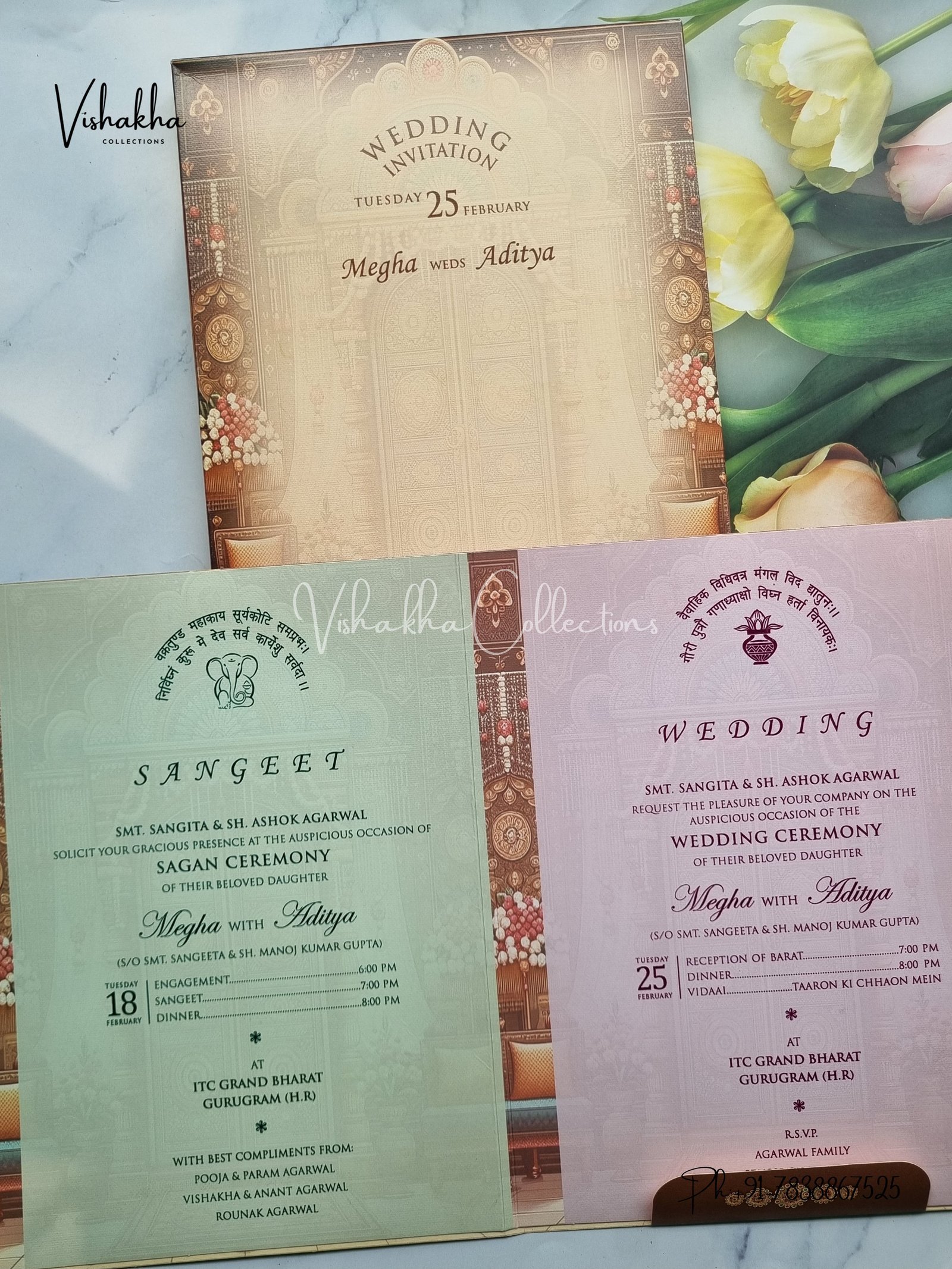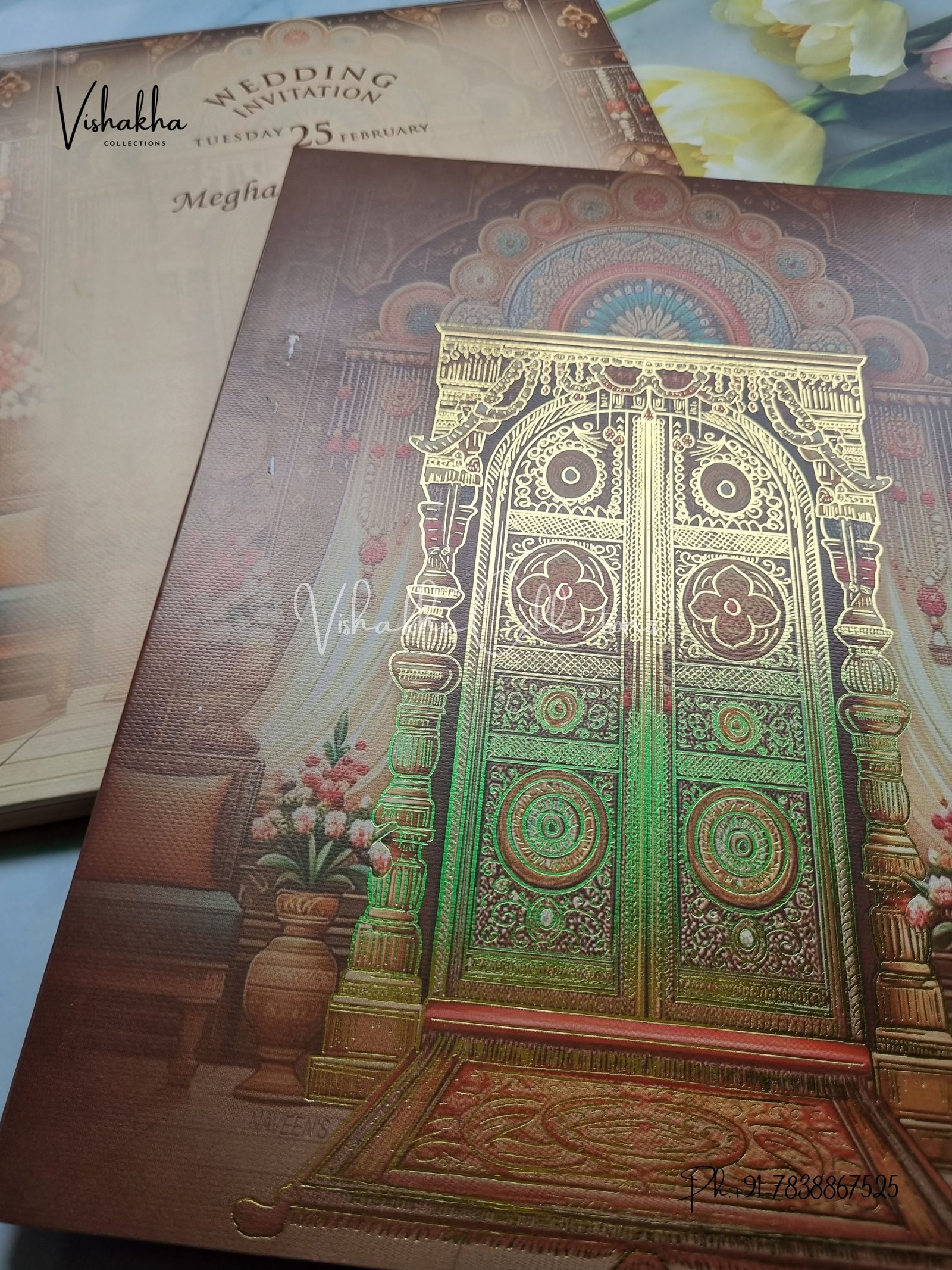 Vishakha Collections presents you beautiful luxury wedding invitation cards with all latest designs and the latest variety. Its just not a wedding invitation card but a beautiful feeling of love and relationship it carries for you. Beautifully printed and packed with a bundle of love. if you like it, dont think again, just go for it.If you are worrying about the quality of the product, send your doubts to us. We are here to help you. If you want in wholesale or bulk, dont forget to contact us.