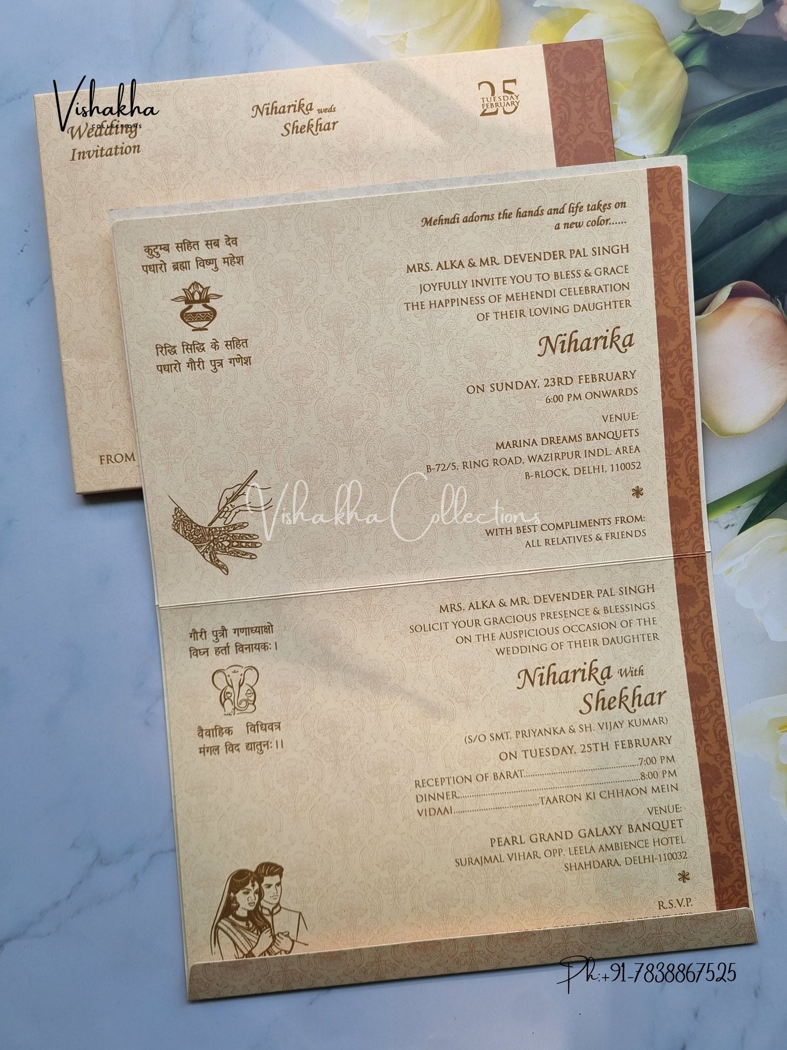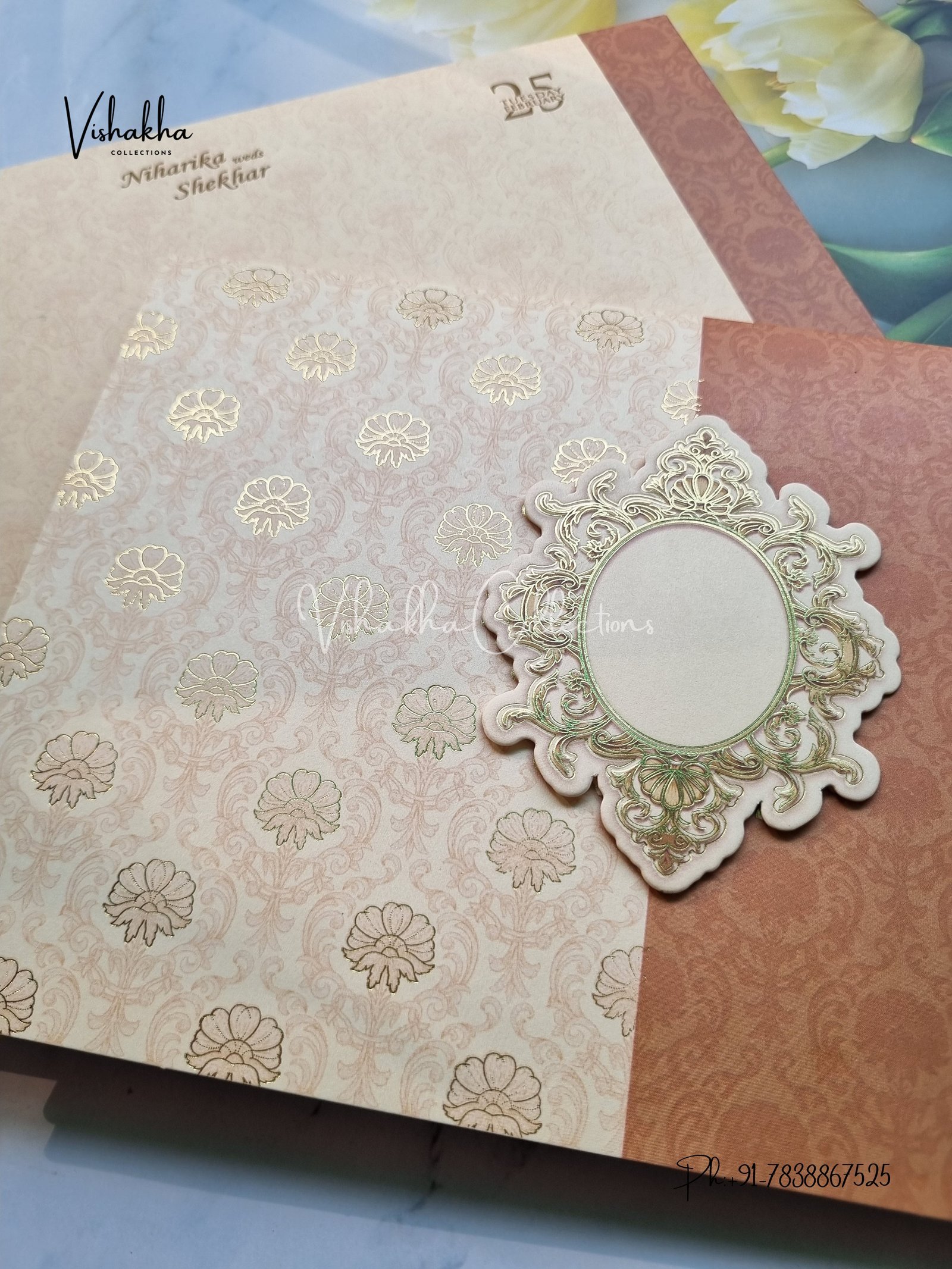 Vishakha Collections presents you beautiful luxury wedding invitation cards with all latest designs and the latest variety. Its just not a wedding invitation card but a beautiful feeling of love and relationship it carries for you. Beautifully printed and packed with a bundle of love. if you like it, dont think again, just go for it.If you are worrying about the quality of the product, send your doubts to us. We are here to help you. If you want in wholesale or bulk, dont forget to contact us.