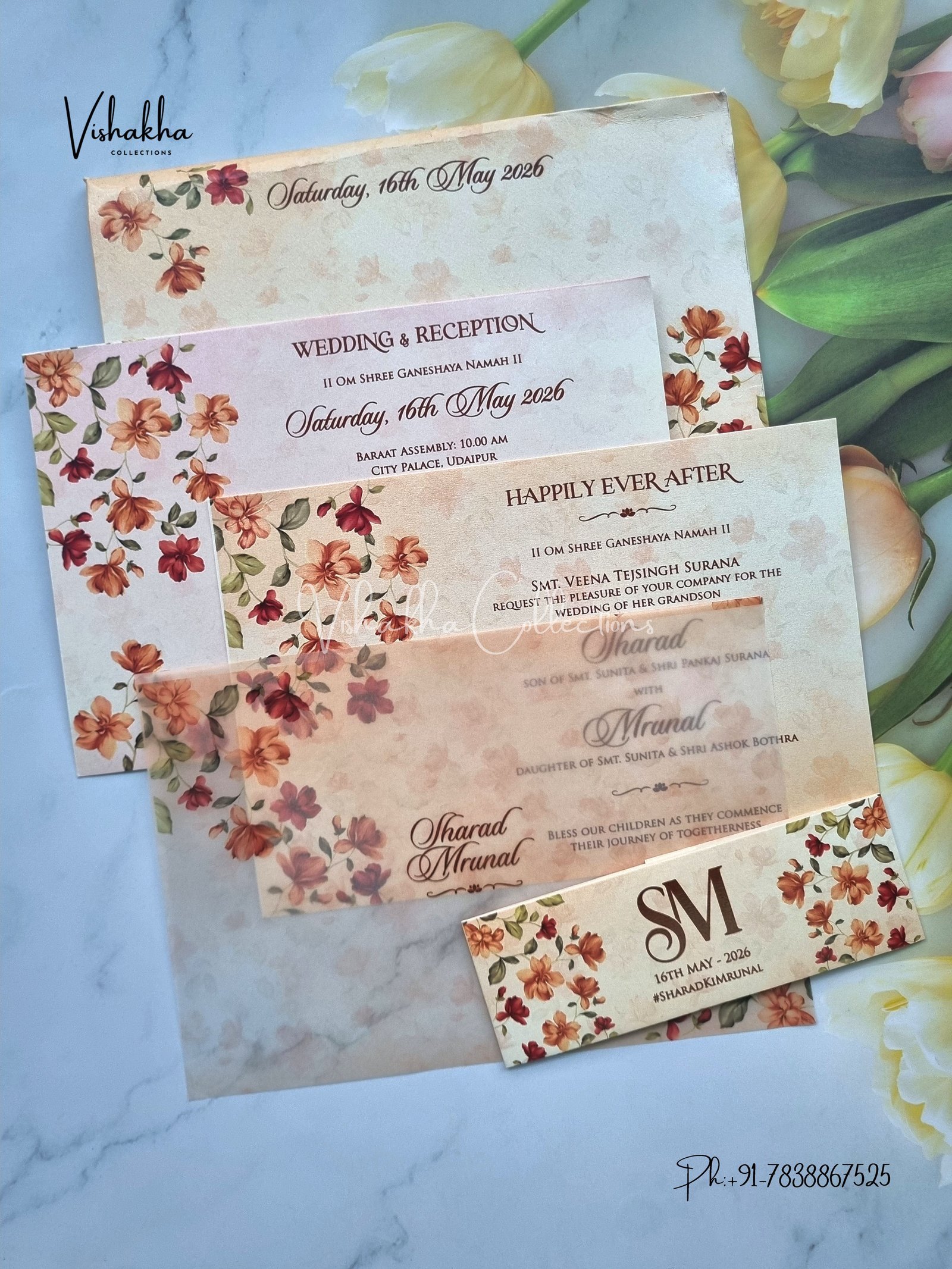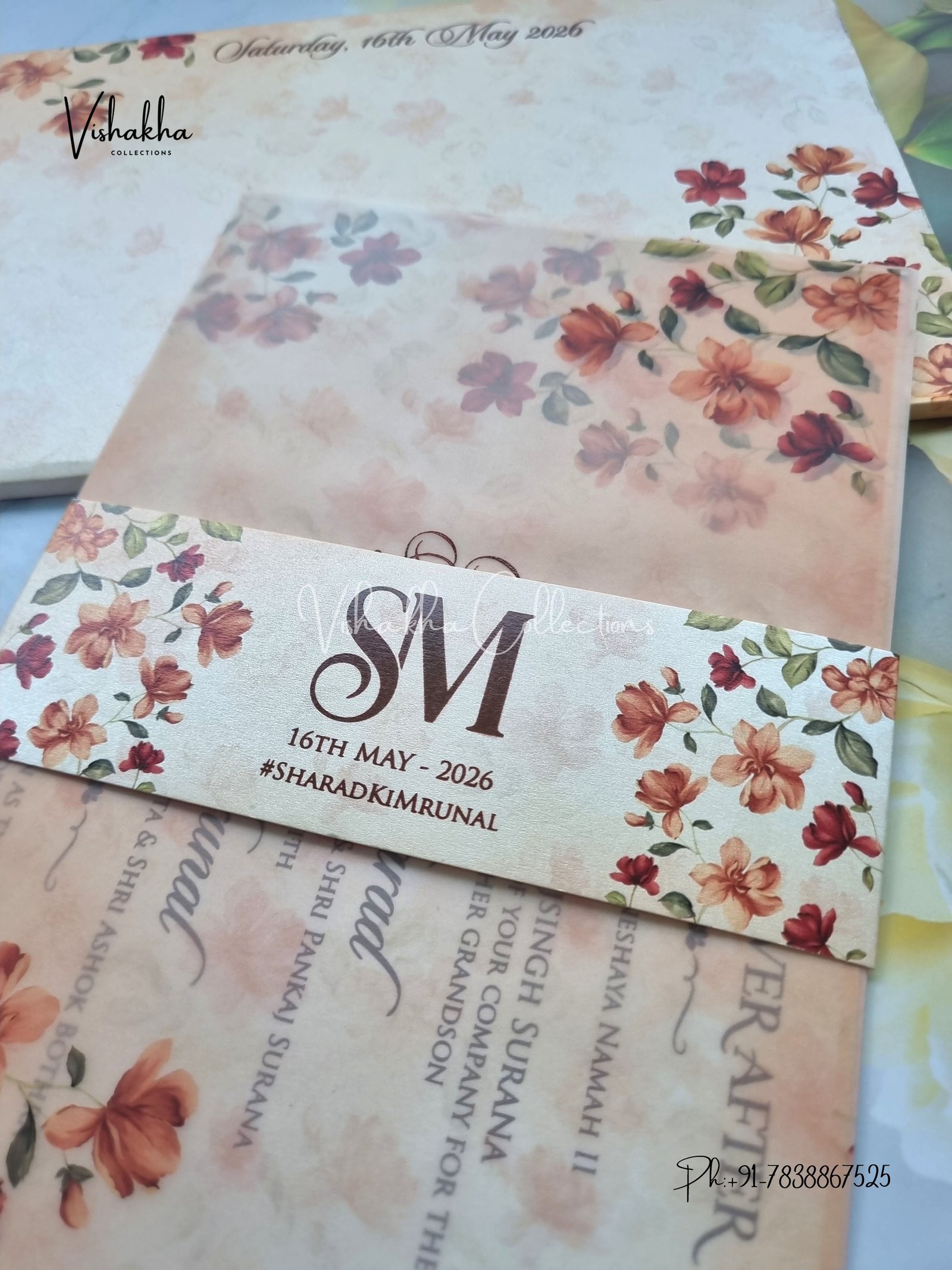 Vishakha Collections presents you beautiful luxury wedding invitation cards with all latest designs and the latest variety. Its just not a wedding invitation card but a beautiful feeling of love and relationship it carries for you. Beautifully printed and packed with a bundle of love. if you like it, dont think again, just go for it.If you are worrying about the quality of the product, send your doubts to us. We are here to help you. If you want in wholesale or bulk, dont forget to contact us.
