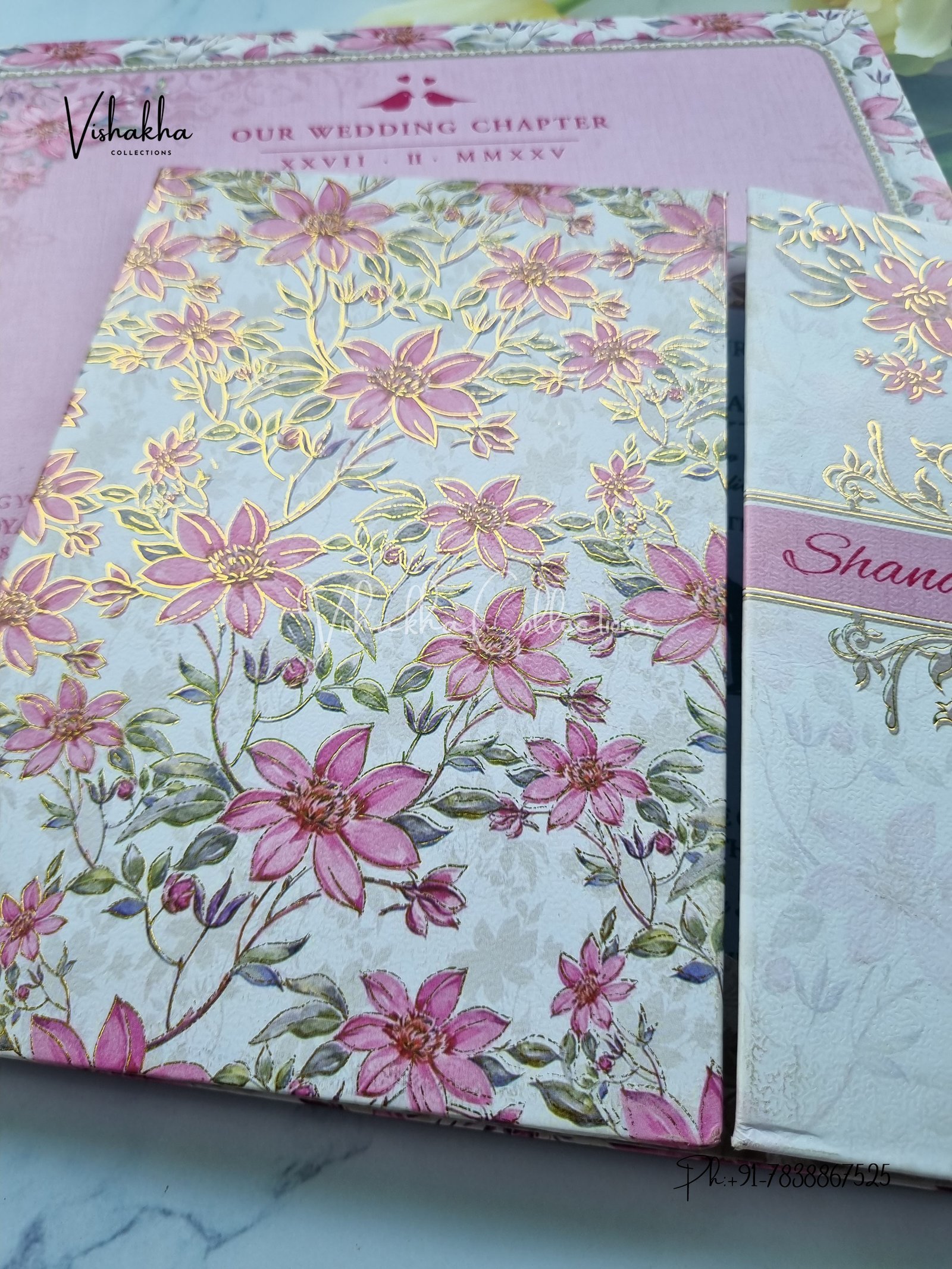 Vishakha Collections presents you beautiful luxury wedding invitation cards with all latest designs and the latest variety. Its just not a wedding invitation card but a beautiful feeling of love and relationship it carries for you. Beautifully printed and packed with a bundle of love. if you like it, dont think again, just go for it.If you are worrying about the quality of the product, send your doubts to us. We are here to help you. If you want in wholesale or bulk, dont forget to contact us.