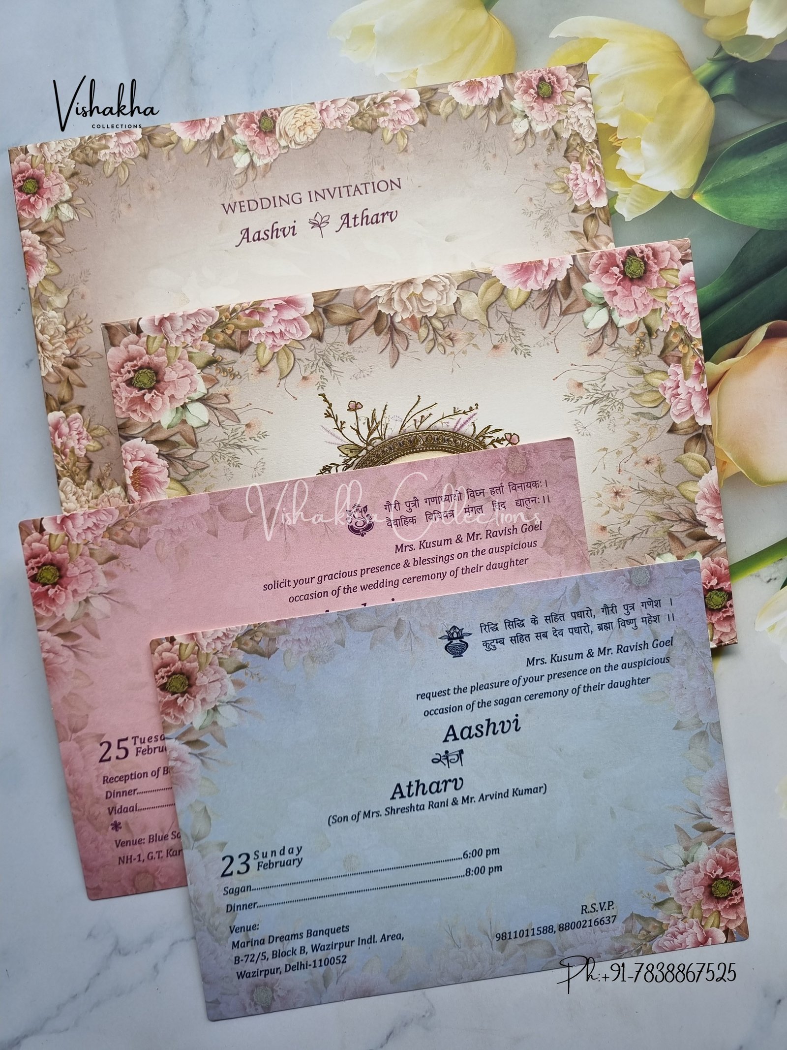 Vishakha Collections presents you beautiful luxury wedding invitation cards with all latest designs and the latest variety. Its just not a wedding invitation card but a beautiful feeling of love and relationship it carries for you. Beautifully printed and packed with a bundle of love. if you like it, dont think again, just go for it.If you are worrying about the quality of the product, send your doubts to us. We are here to help you. If you want in wholesale or bulk, dont forget to contact us.