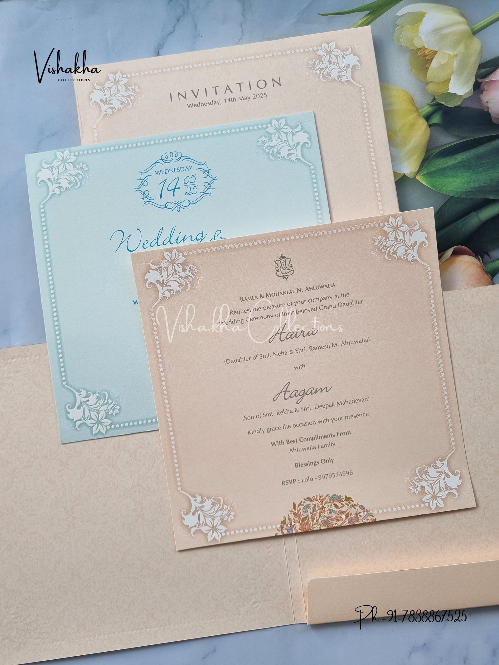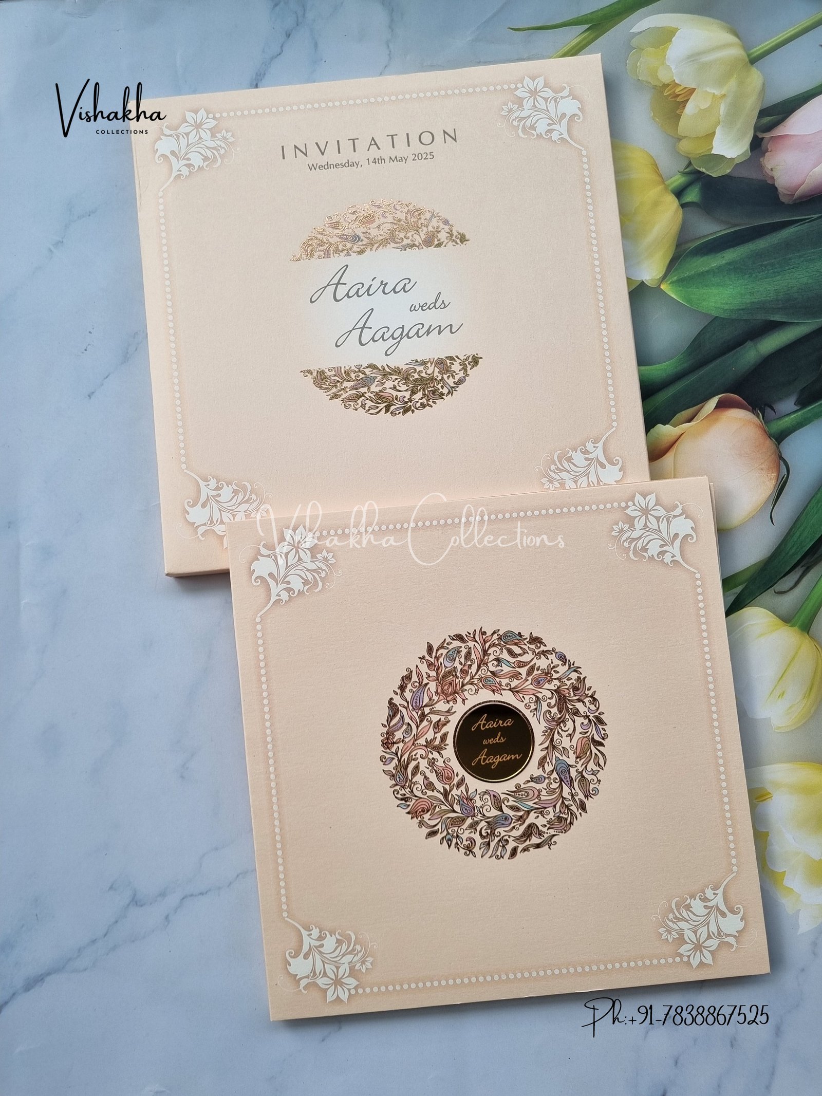 Vishakha Collections presents you beautiful luxury wedding invitation cards with all latest designs and the latest variety. Its just not a wedding invitation card but a beautiful feeling of love and relationship it carries for you. Beautifully printed and packed with a bundle of love. if you like it, dont think again, just go for it.If you are worrying about the quality of the product, send your doubts to us. We are here to help you. If you want in wholesale or bulk, dont forget to contact us.