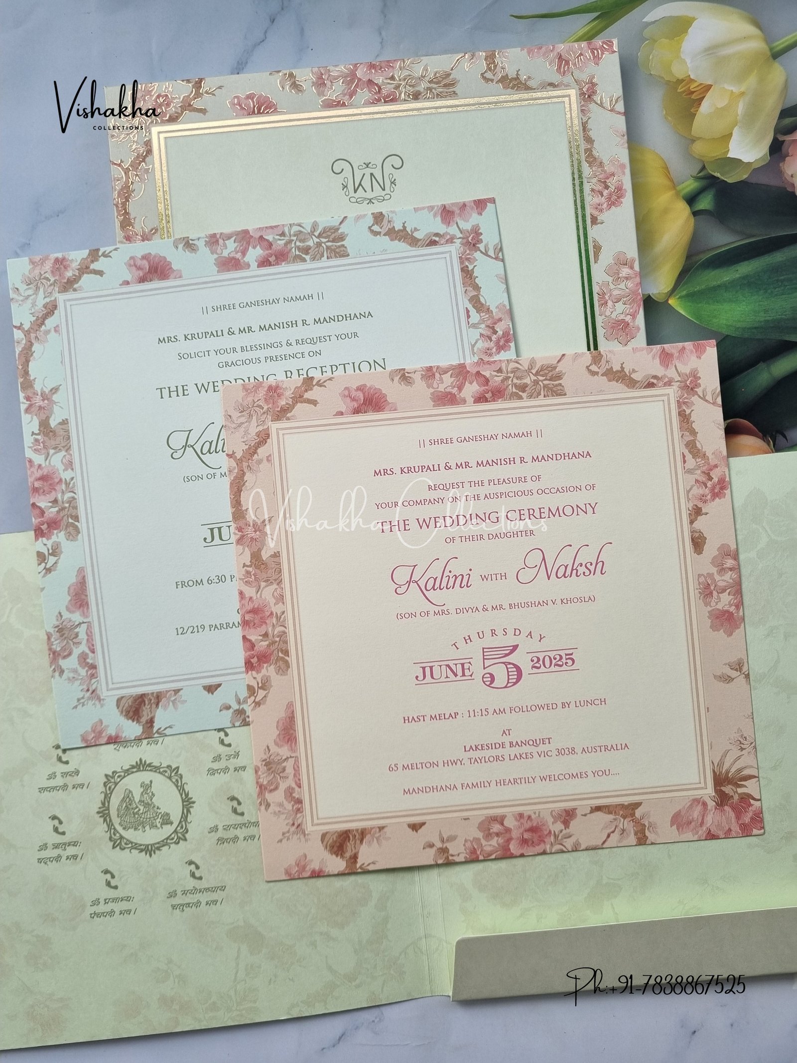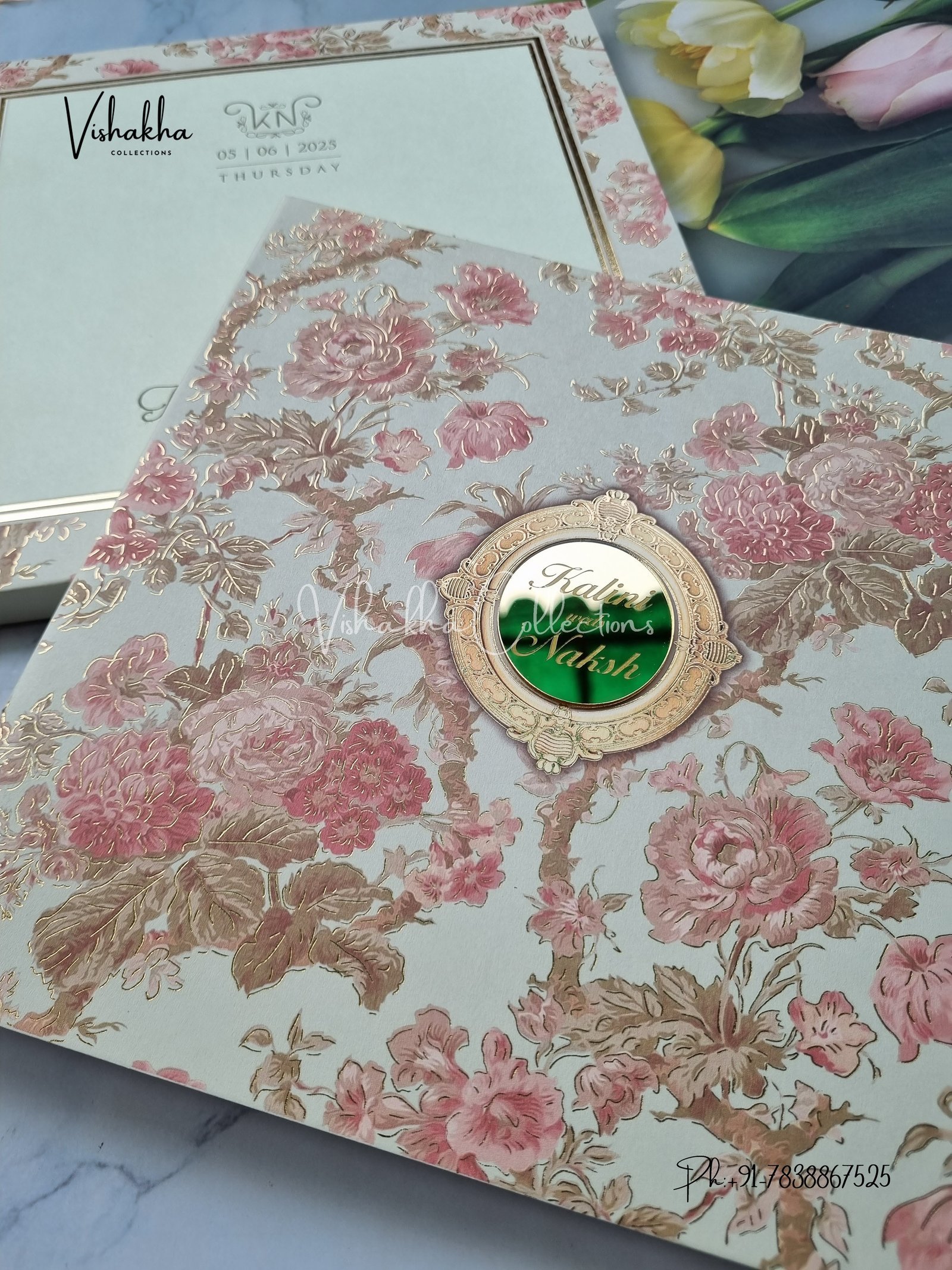 Vishakha Collections presents you beautiful luxury wedding invitation cards with all latest designs and the latest variety. Its just not a wedding invitation card but a beautiful feeling of love and relationship it carries for you. Beautifully printed and packed with a bundle of love. if you like it, dont think again, just go for it.If you are worrying about the quality of the product, send your doubts to us. We are here to help you. If you want in wholesale or bulk, dont forget to contact us.