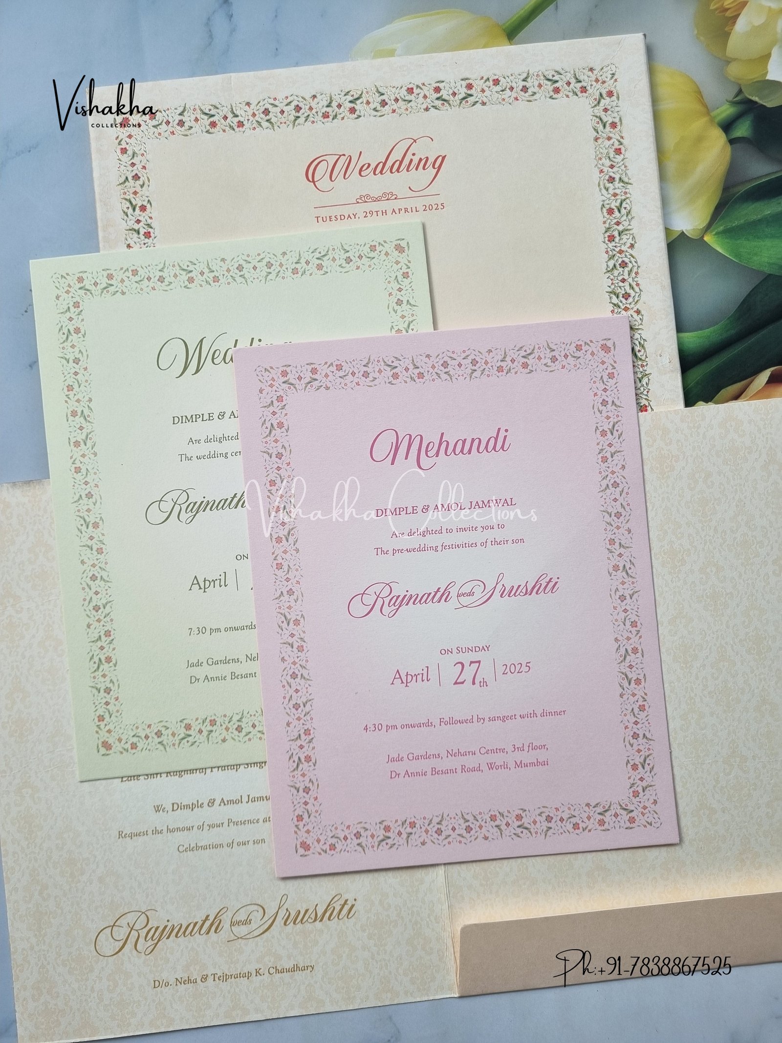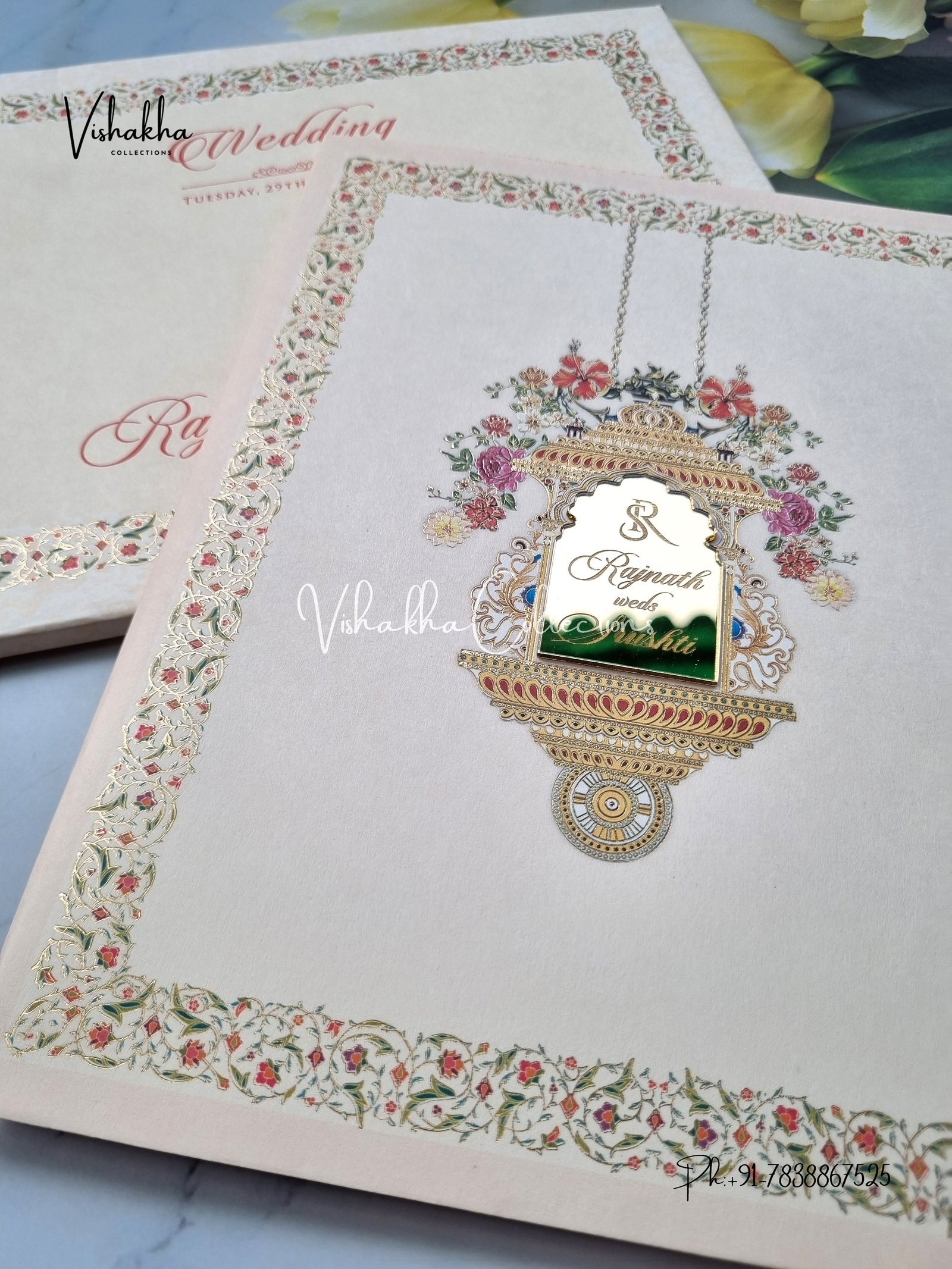 Vishakha Collections presents you beautiful luxury wedding invitation cards with all latest designs and the latest variety. Its just not a wedding invitation card but a beautiful feeling of love and relationship it carries for you. Beautifully printed and packed with a bundle of love. if you like it, dont think again, just go for it.If you are worrying about the quality of the product, send your doubts to us. We are here to help you. If you want in wholesale or bulk, dont forget to contact us.